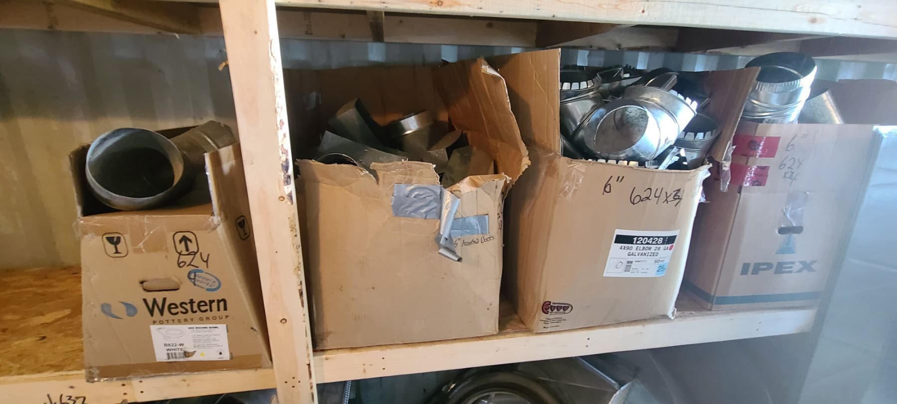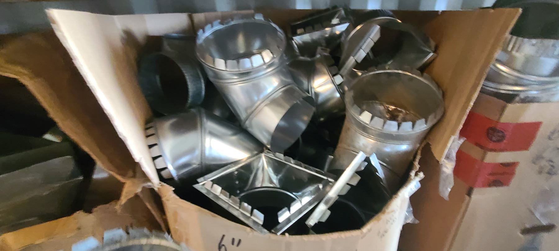 FOUR BOXES OF 6" TAKE OFFS, ELBOWS, AND ASSORTED BOOTS