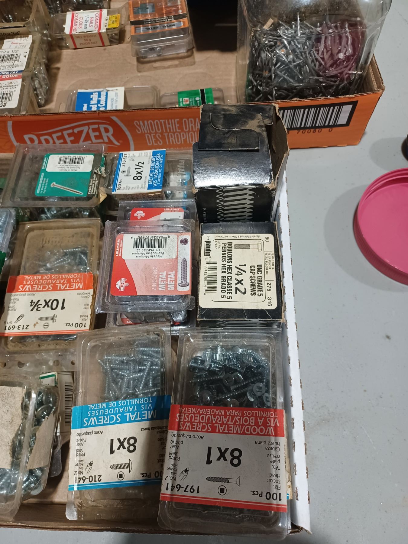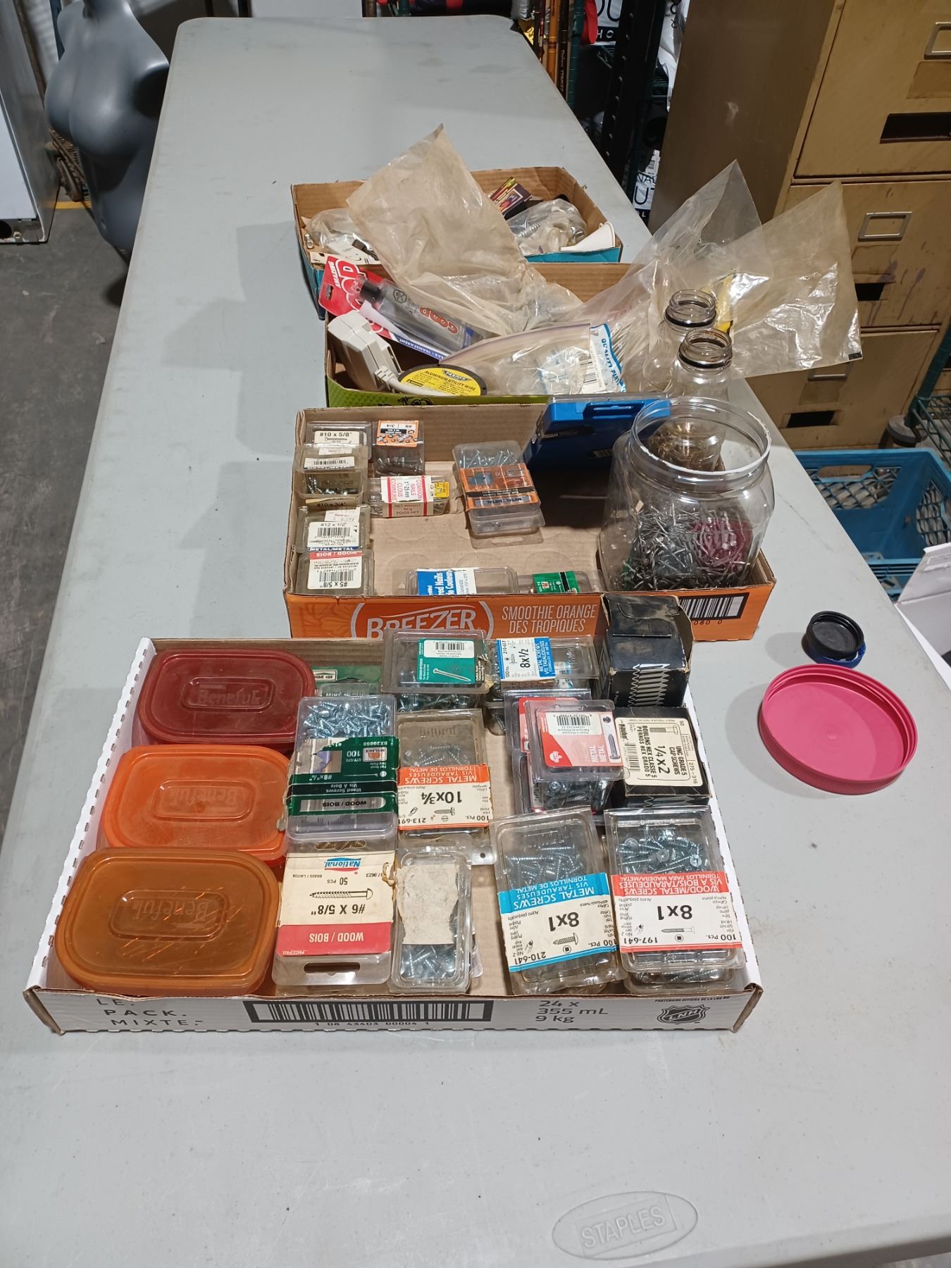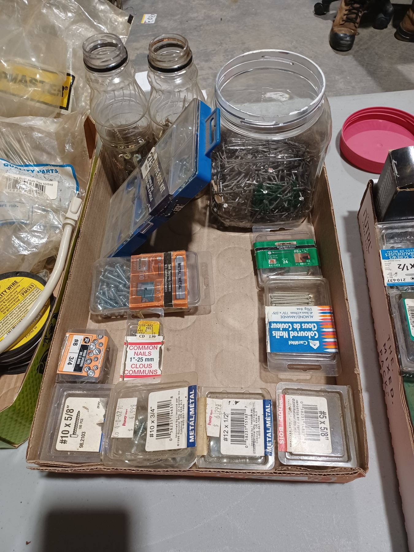 FOUR BOXES OF ASSORTED SCREWS AND NAILS