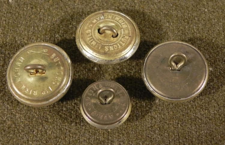 FOUR BRITISH MILITARY COAT BUTTONS-REVERSE MARKED TO UK MAKERS * * * *