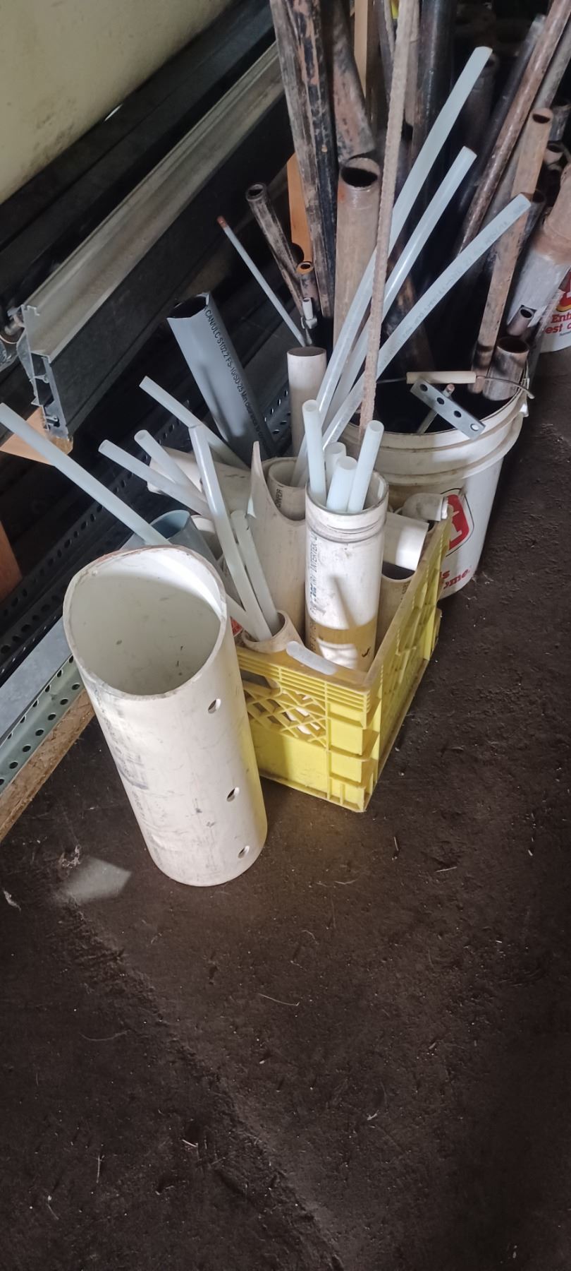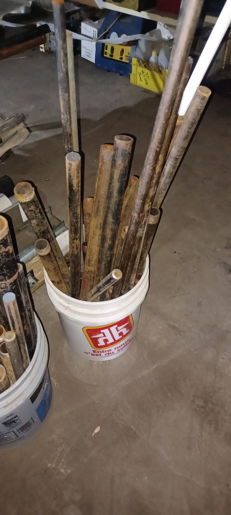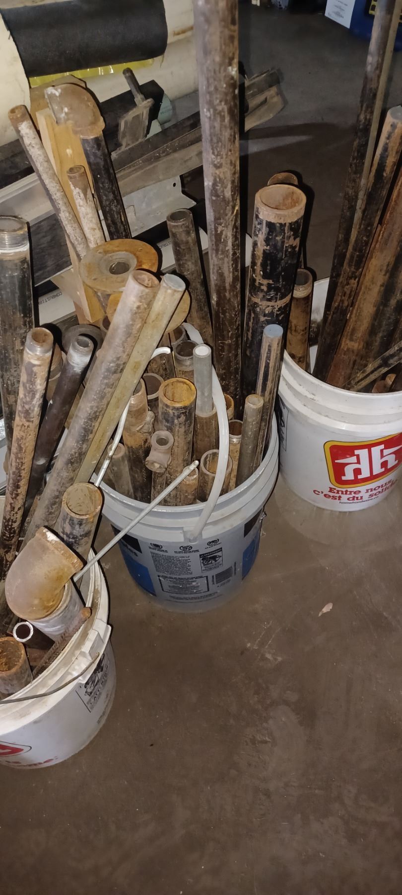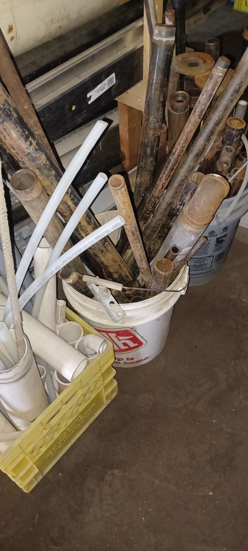 FOUR BUCKETS OF SHORT METAL PIPE PIECES