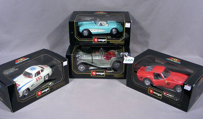 1937 Jaguar SS 100, 1955 Mercedes 300 SL Mille Miglia, 1957 Chevrolet Corvette and a 1962 Ferrari 250 GTO. All in original boxes.