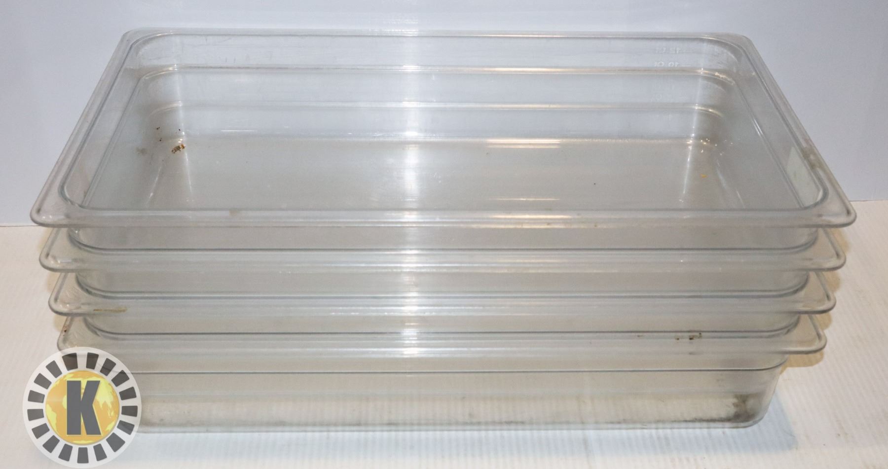 FOUR CAMBRO FULL SIZE PLASTIC INSERTS 4" DEEP EACH
