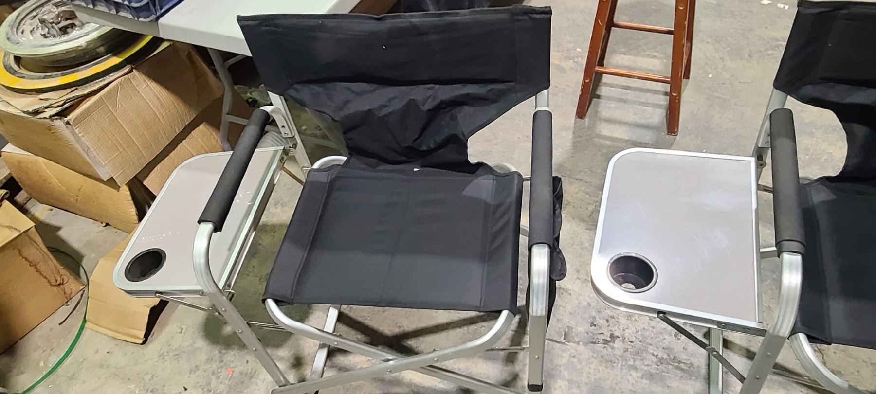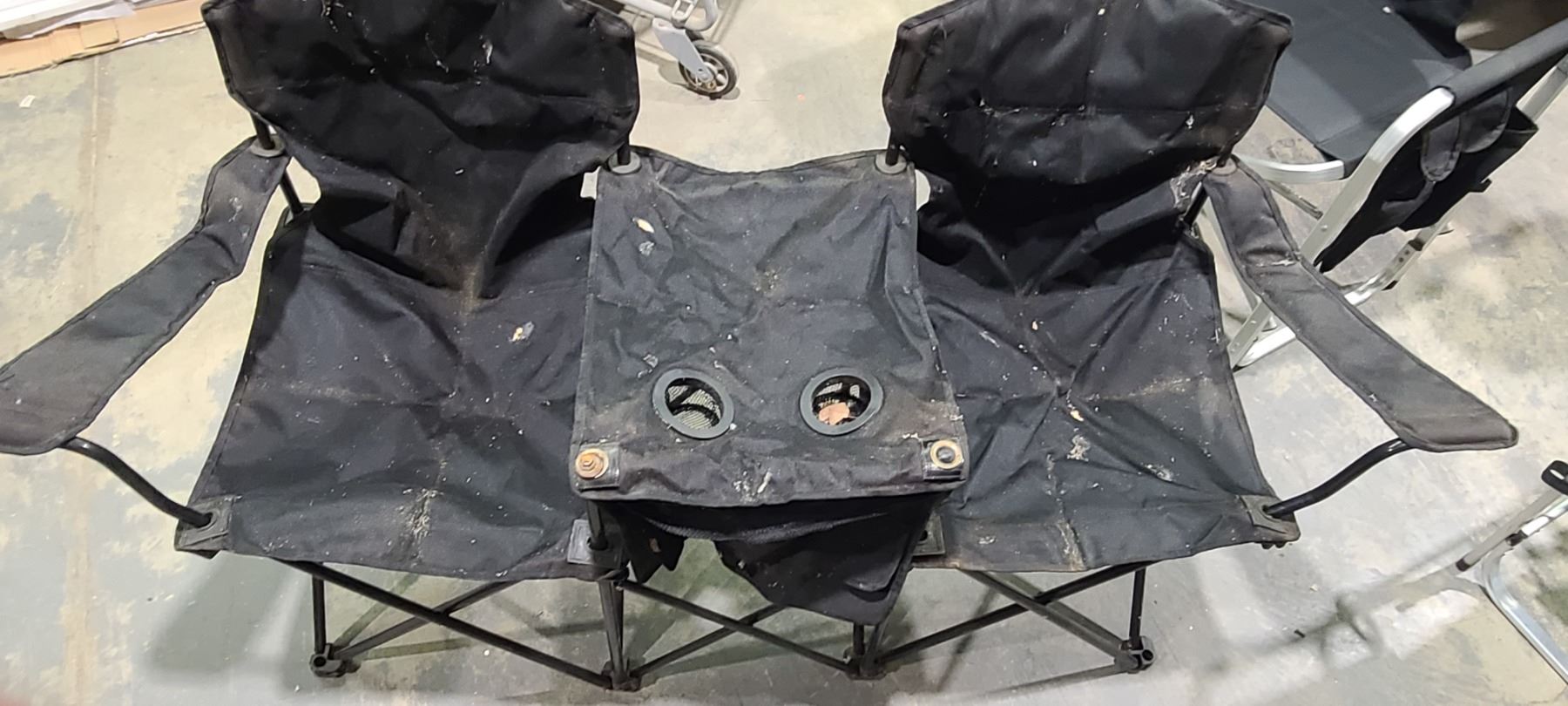 FOUR CAMPING CHAIRS, THREE NEW SINGLE SEATS AND ONE USED DOUBLE SEAT