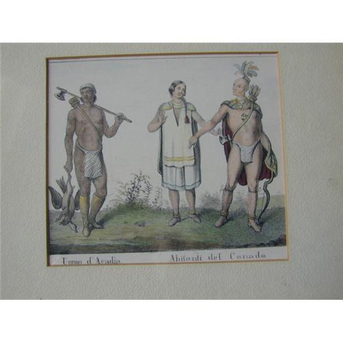 It is our pleasure to offer 4 Italian prints dating from what we would assume to be around 1780. These are hand coloured and portray aboriginal life as it then existed in Canada.
