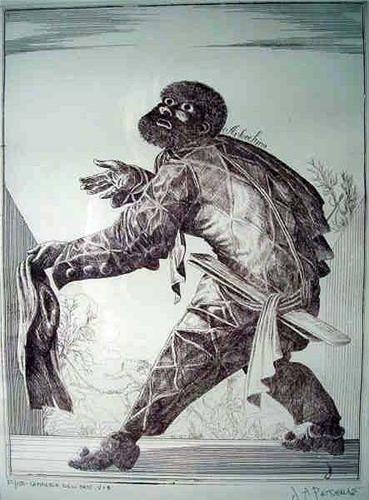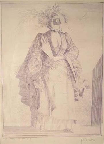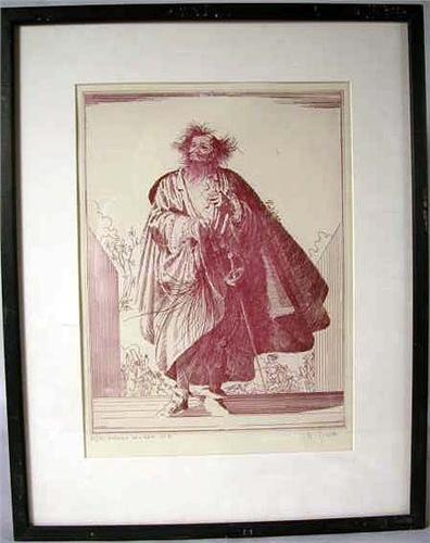 From the "Commedia dell`Arte" series, 1981, by Joe A. Pecsenke, each signed and titled, and each numbered on verso, editions of 150. Each 17"h x 12 1/2"w.
