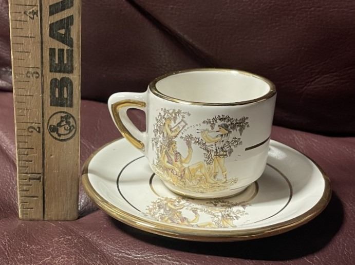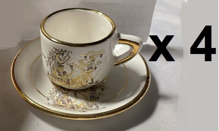 FOUR Espresso Cups and Saucers, From Greece, With Gold Rims