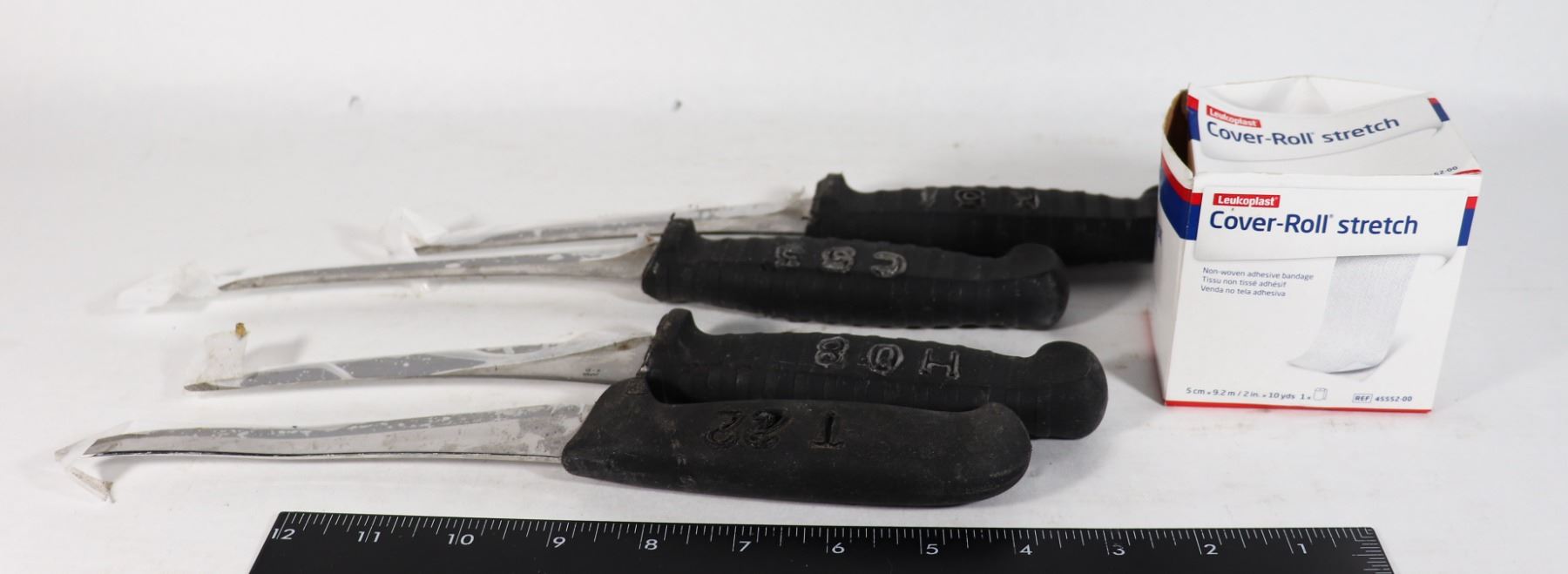 FOUR FISHING FILLET KNIVES SOLD WITH BANDAGE WRAP