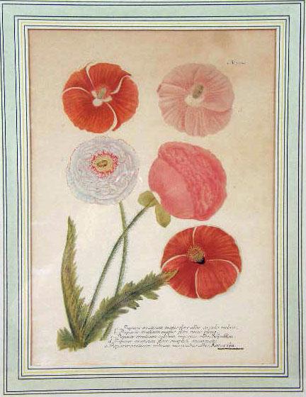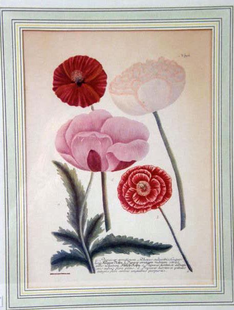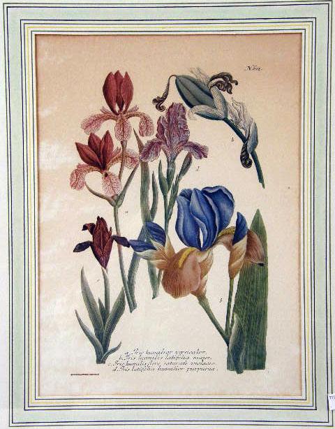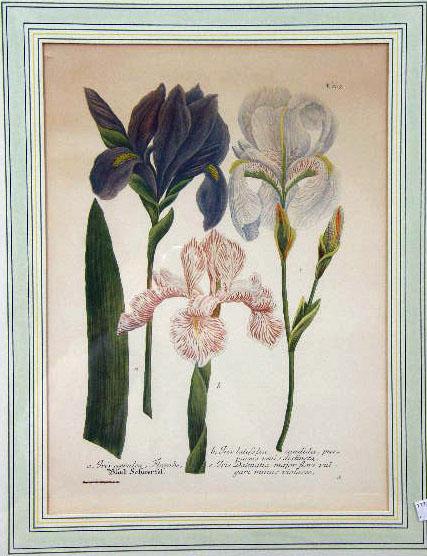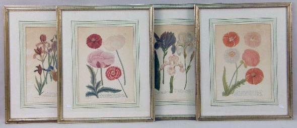 FOUR FRAMED FLORAL POLYCHROME PRINTS