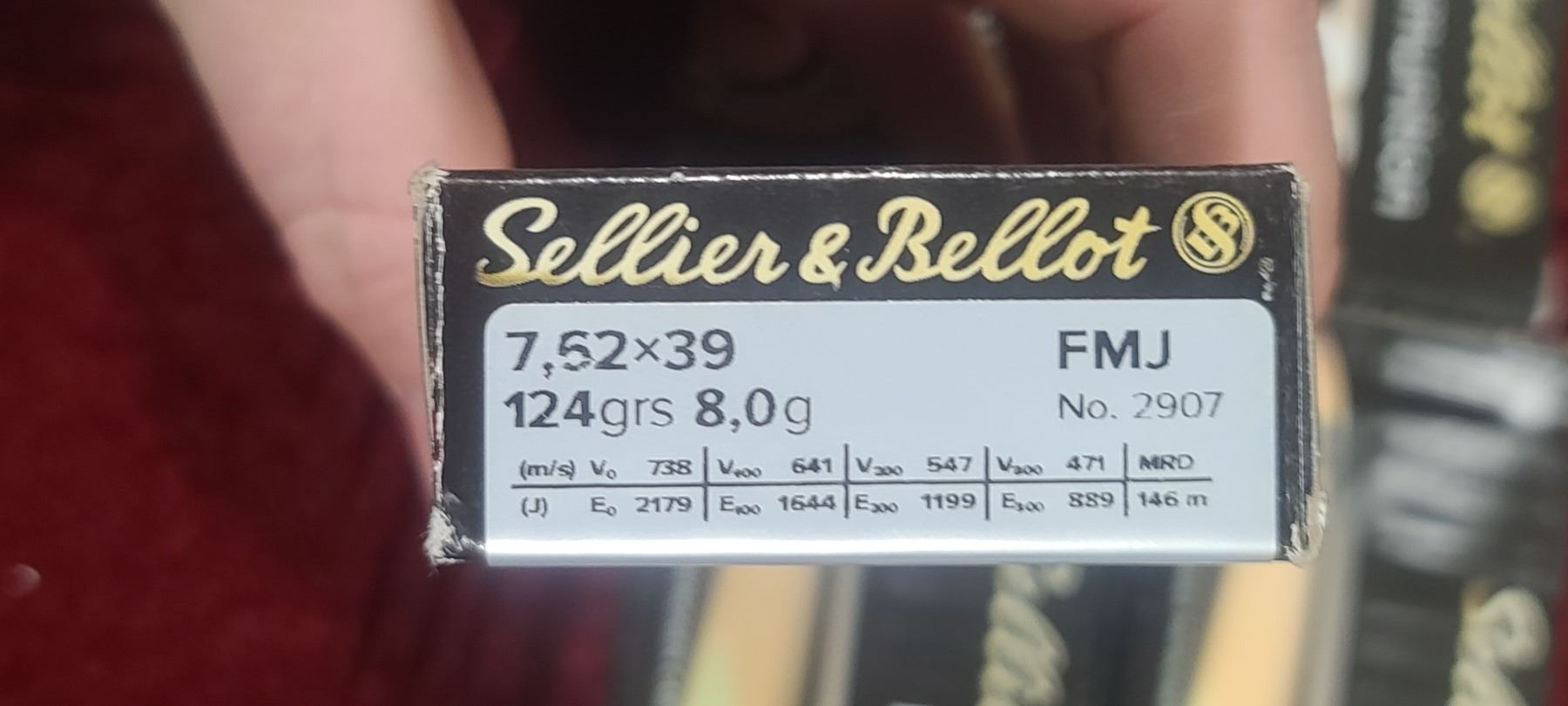 FOUR FULL BOXES (20EA) AND ONE PARTIAL (7ROUNDS) OF 7.62 X 39 124GR FMJ BY SELLIER AND BELLOT TOTAL 87 ROUNDS