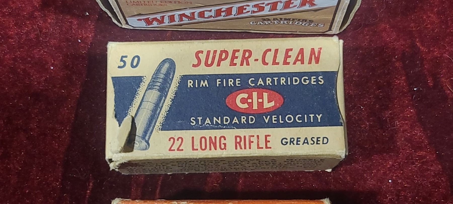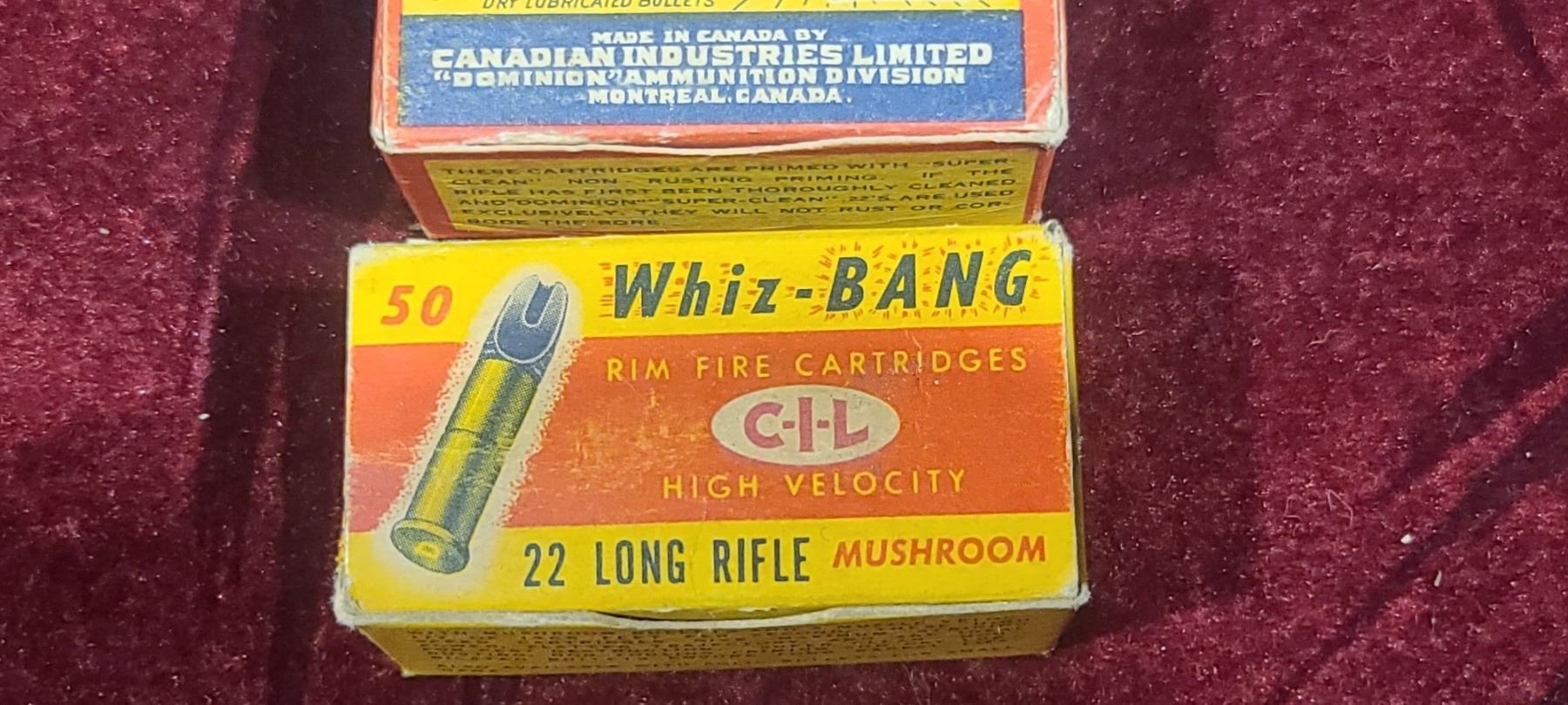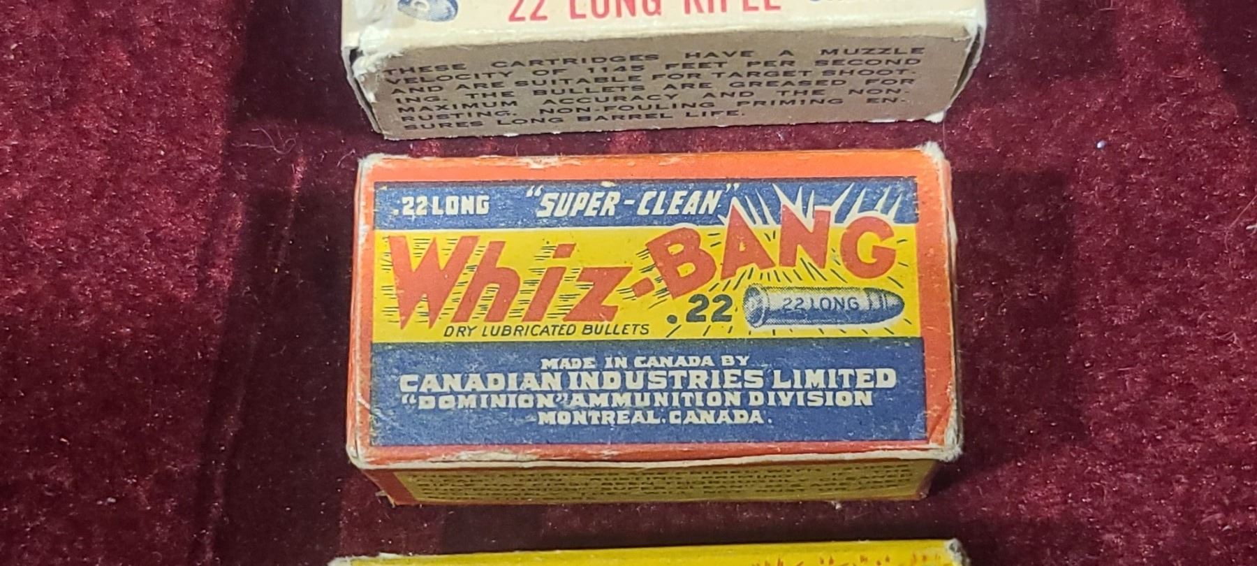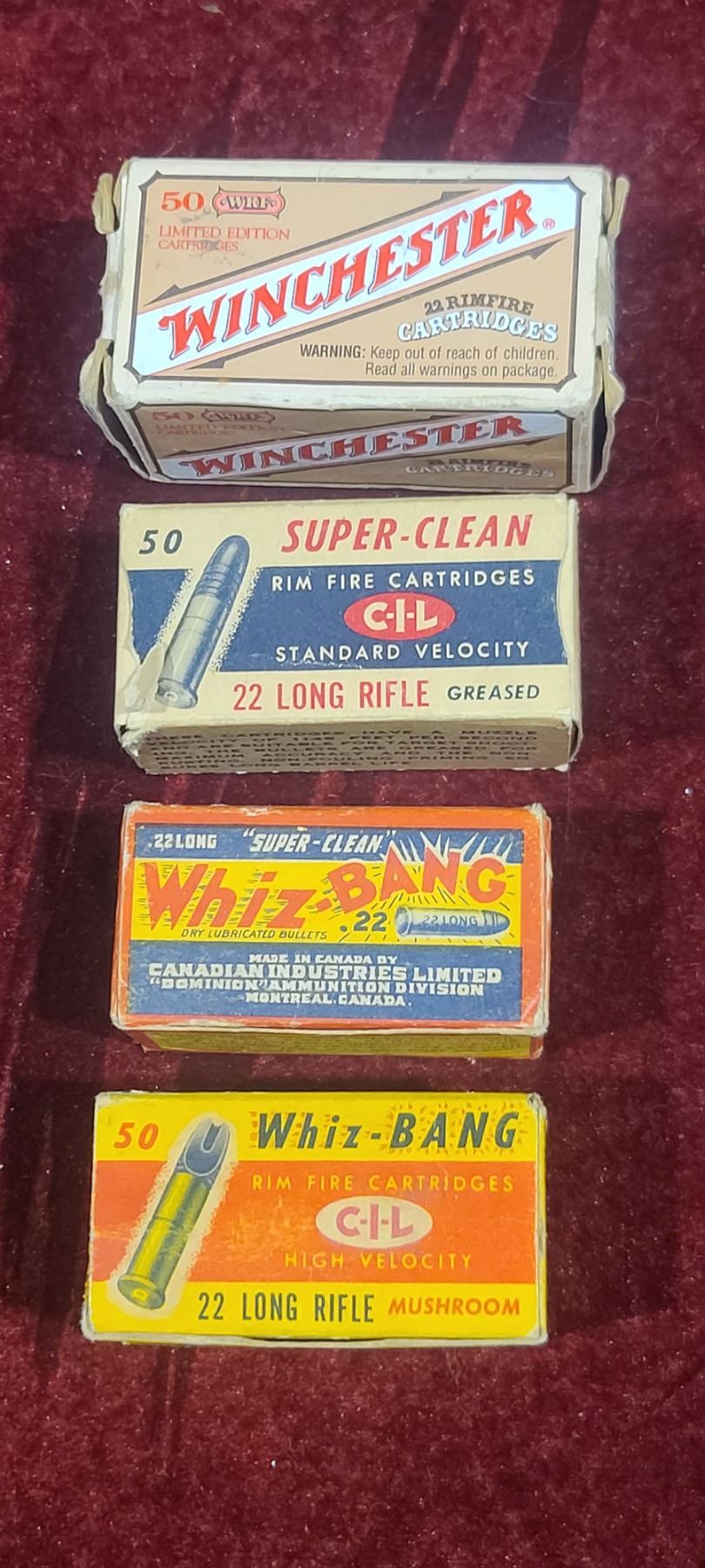 FOUR FULL VINTAGE BOXES OF .22LR INCLUDING MUSHROOMING .22LR