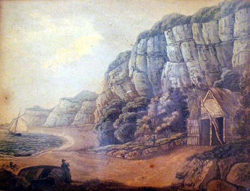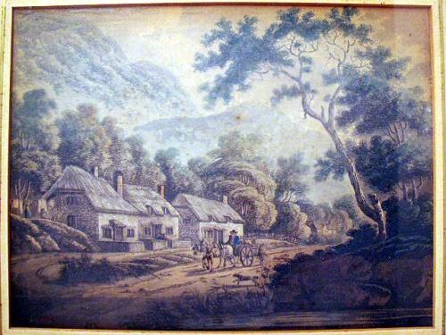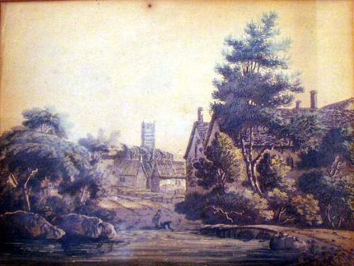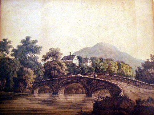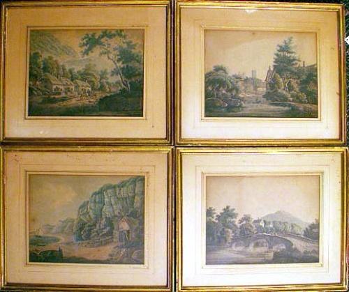Probably English, depicting rural scenes. Stained, faded. 8 1/2"h x 11"w.
