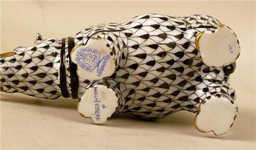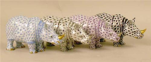 All signed Herend, Hungary, one black, one silver, one blue, and one purple, Each 3"h x 5"l