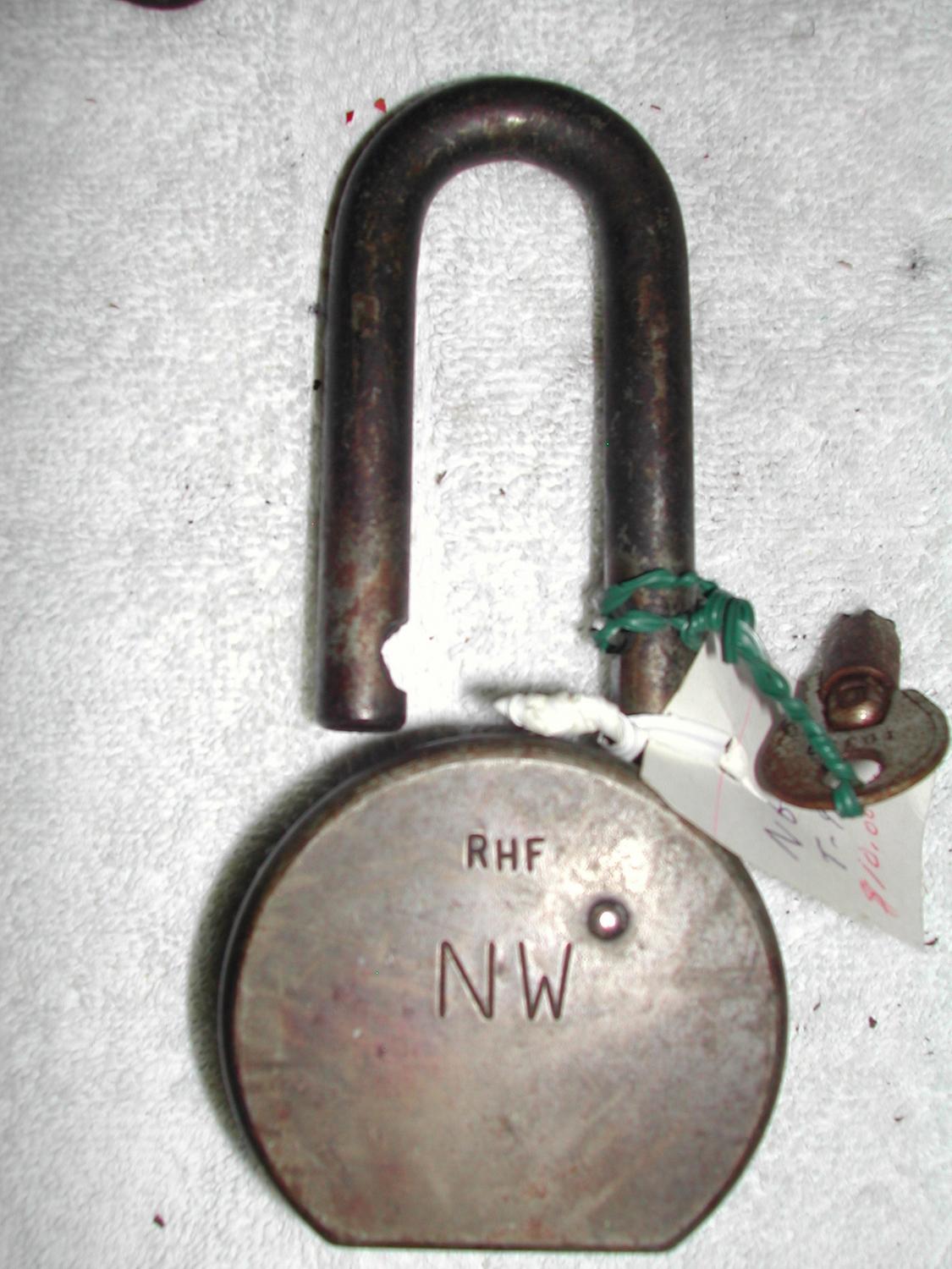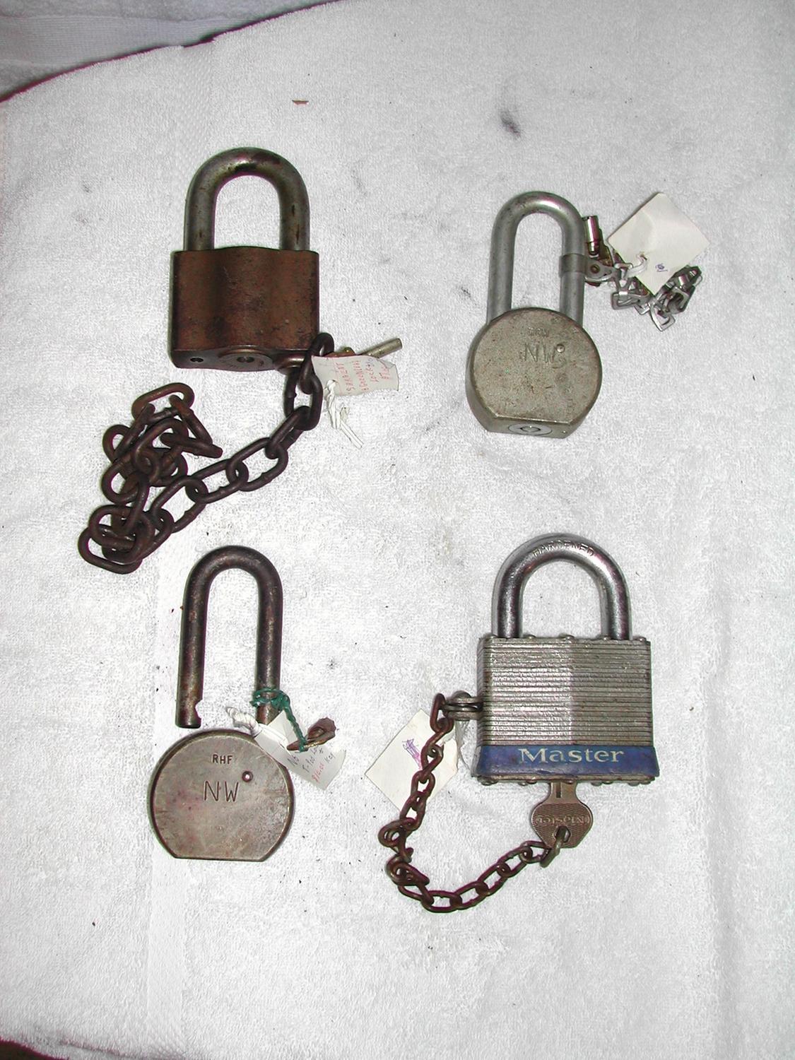 FOUR LOCKS WITH KEYS: TWO N&W AMERICAN LOCK LARGE MASTER LOCK MARKED CSX, SARGENT & GREENLEAF