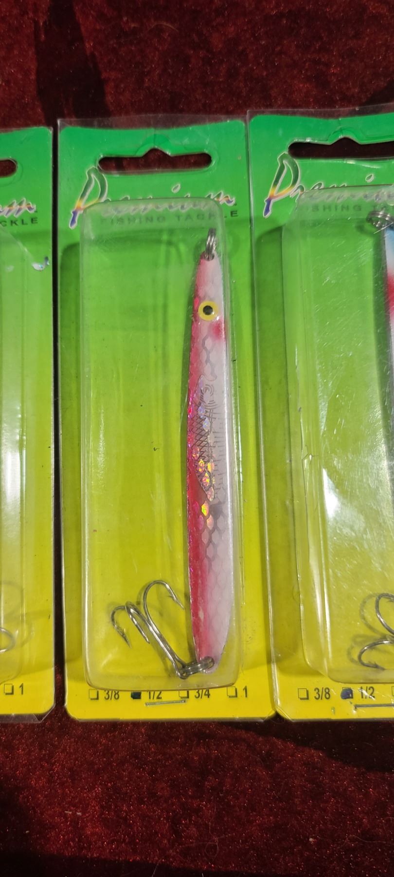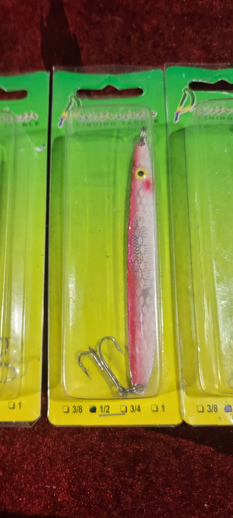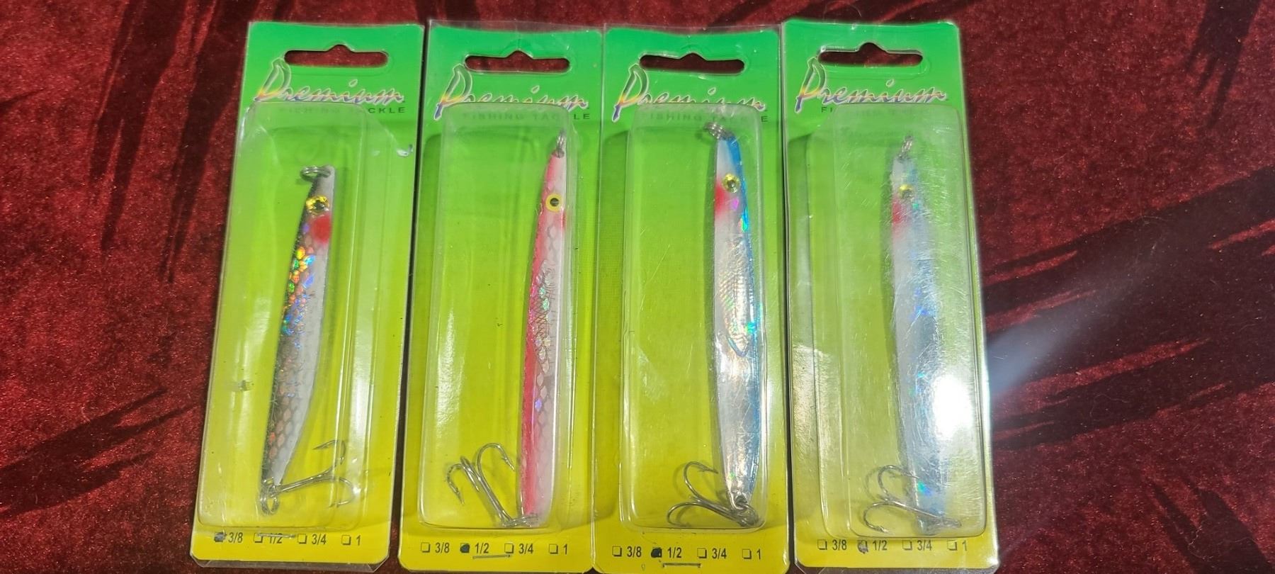 FOUR MINNOW LURES WITH TREBLE HOOKS - THREE ARE 1/2 AND 1/3 AND 3/8