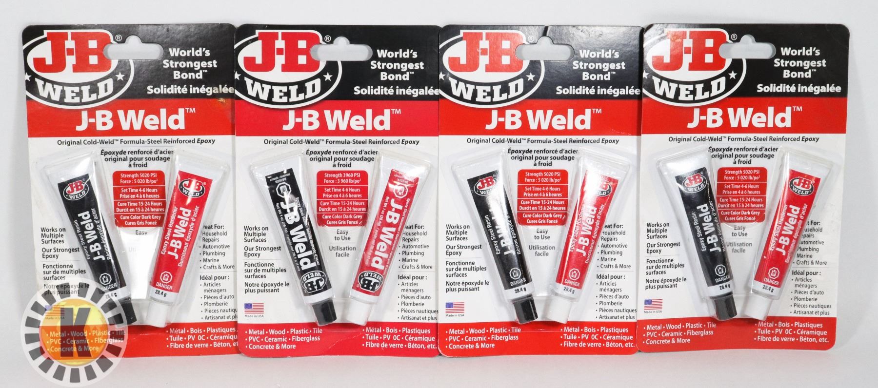 FOUR PACKAGES OF J-B WELD (ORIGINAL COLD WELD)