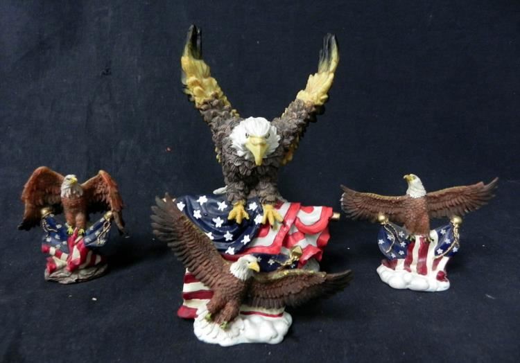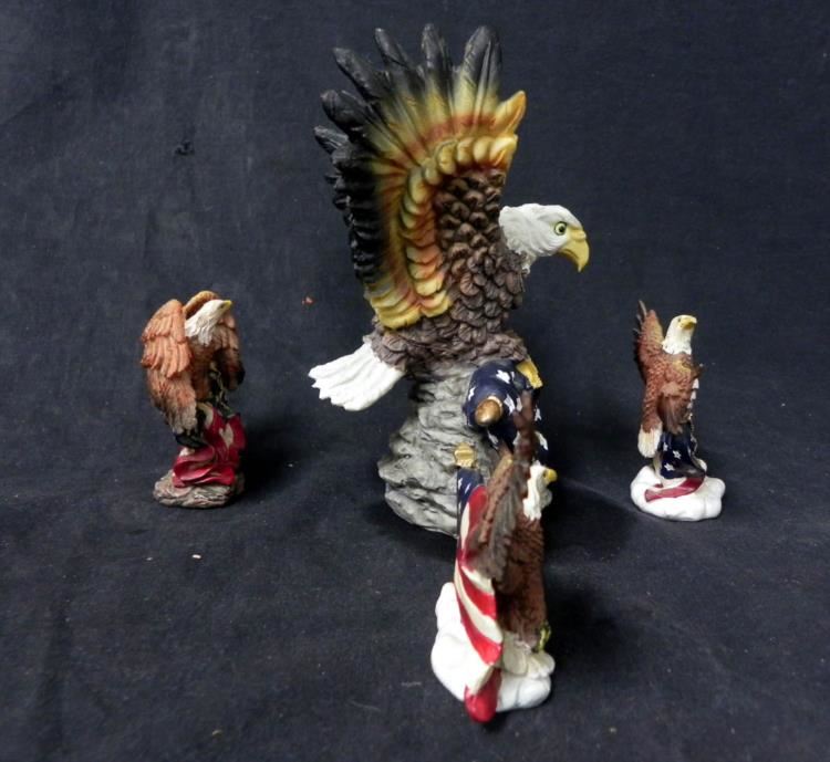 FOUR PATRIOTIC EAGLE STATUES---TALL STATUE 6 1/2---3" ON OTHERS