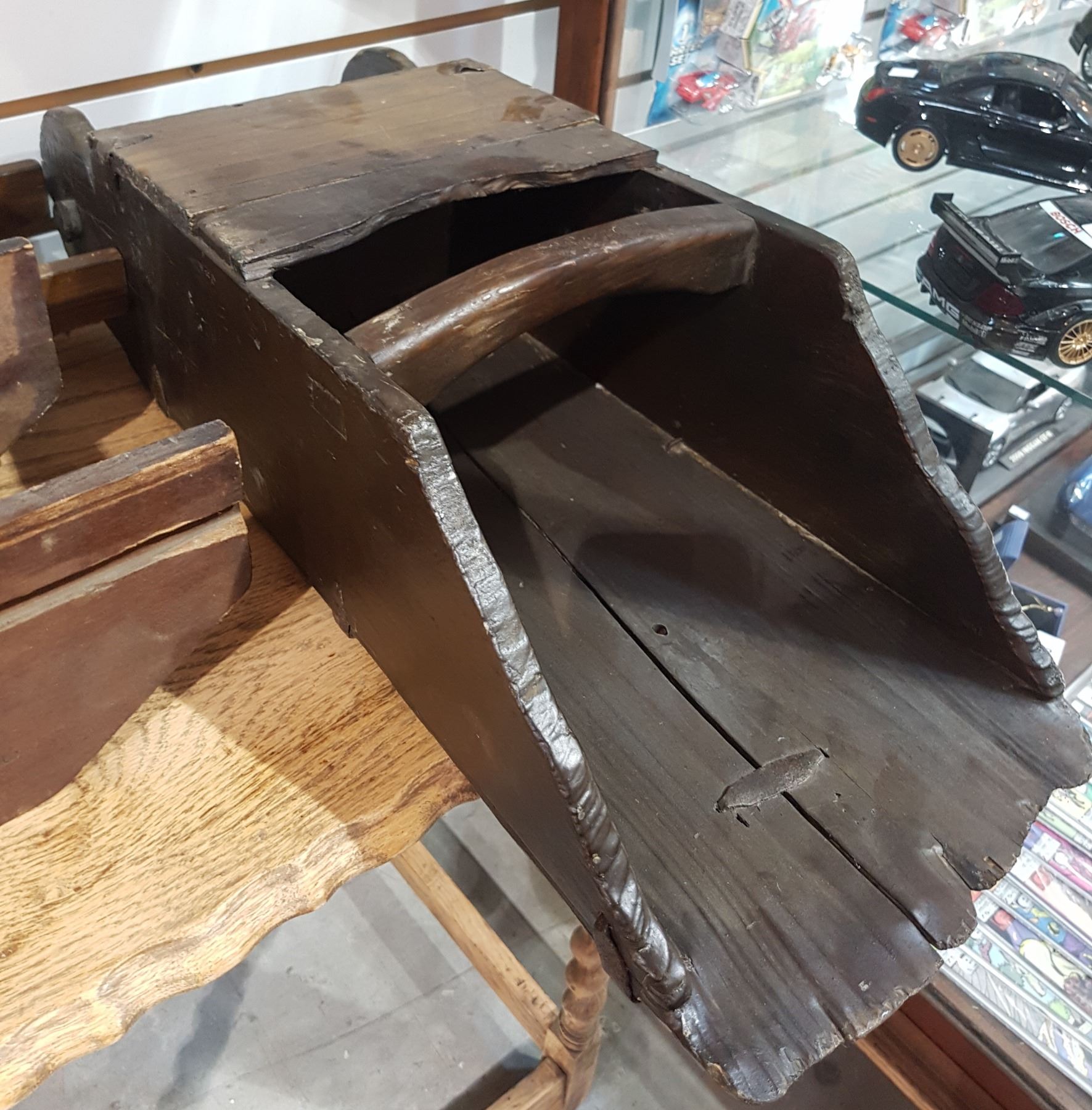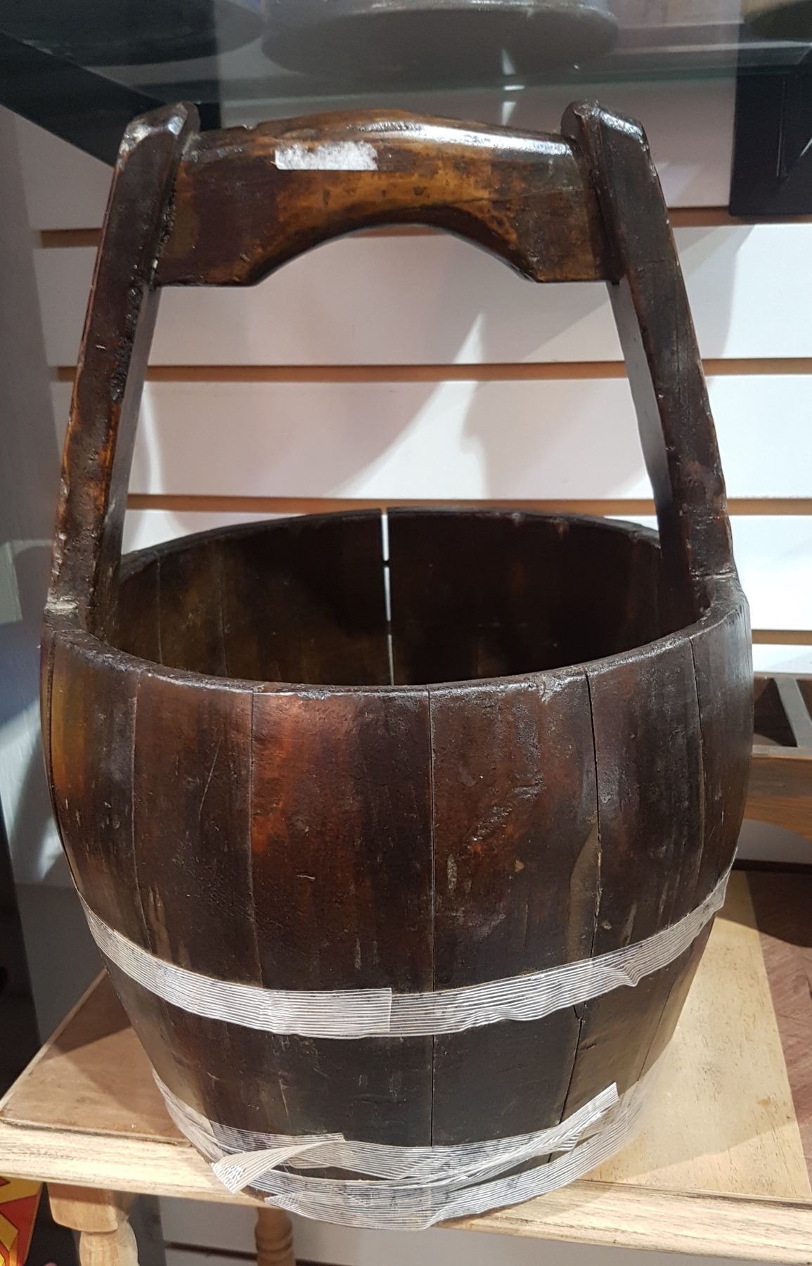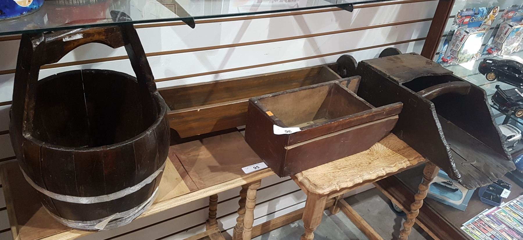 FOUR PC LOT- VINTAGE WOOD BASKET, WOOD WALL HOLDER ETC