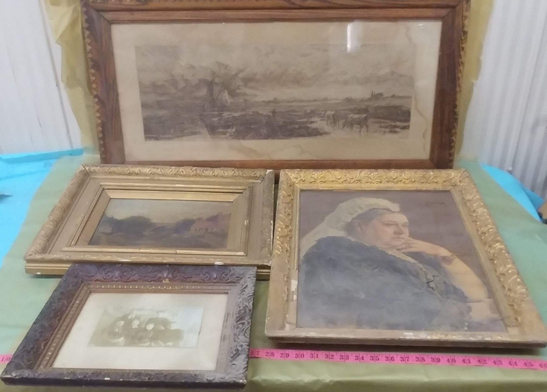 FOUR PICTURES (WATER DAMAGE ON SOME, TEAR IN 1)