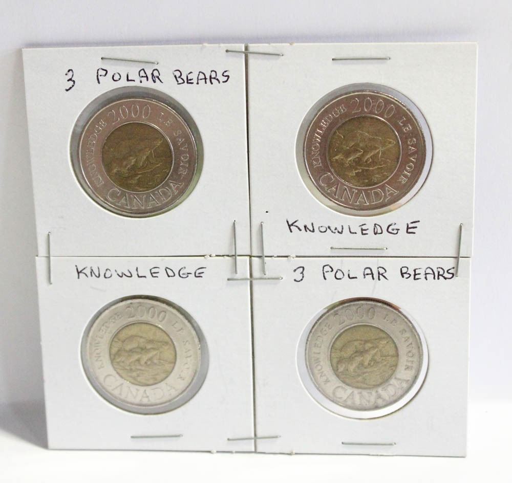FOUR POLAR BEAR/KNOWLEDGE COINS