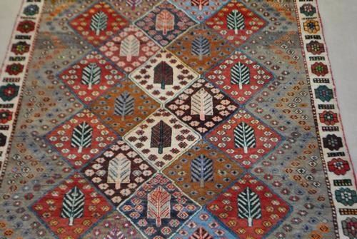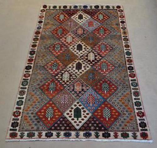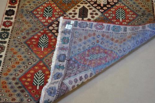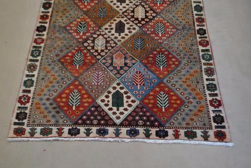 SIMPLY BEAUTIFUL FOUR SEASONS ANTIQUE STAINS BAKHTIARI DESIGN RUG. SIZE 8.9 X 4.7 FEET, MADE OF FINE QUALITY BABY LAMB'S WOOL PILE ON COTTON FOUNDATION, ALL NATURAL VEGETABLE DYE, INCORPORATING A BEAUTIUFL ALLOVER FOUR SEASONS DESIGN, WITH AN ARRAY OF COLORS REPRESENTING EACH SEASON AND FINISHED OFF BEAUTIFULLY WITH AN INTRICATE FLORAL BORDER. A BEAUTIFUL RUG THAT WOULD LOOK GREATY IN ANY ROOM OF THE HOUSE.