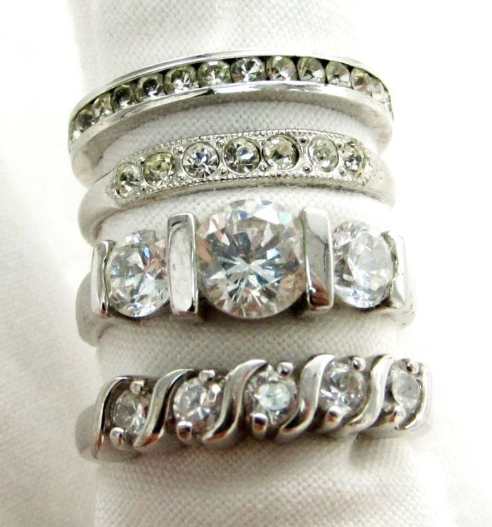 BEAUTIFUL IMITATION DIAMONDS SHINY SILVER BANDS TOTAL 6.8 DWT