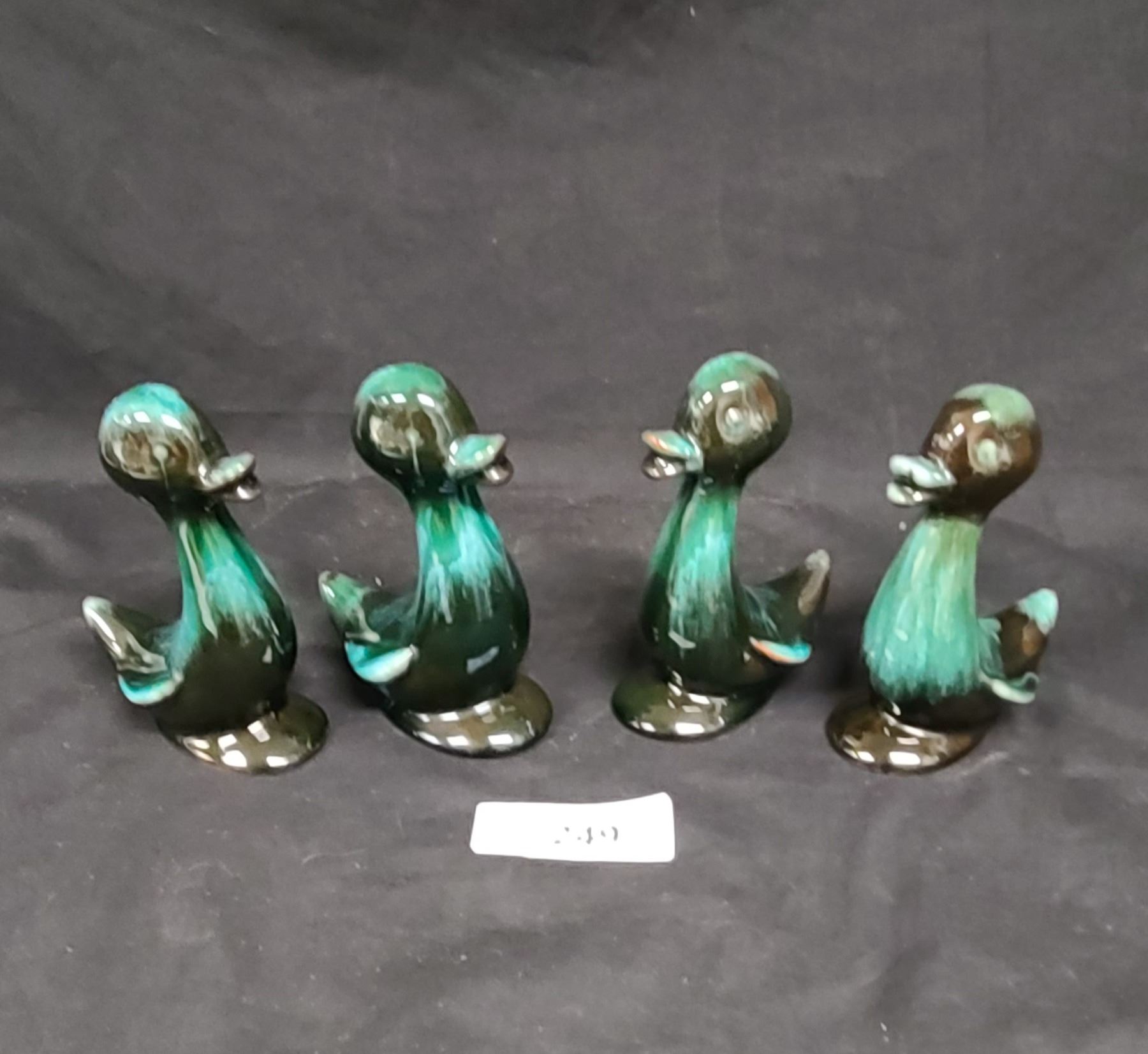 FOUR SMALL BLUE MOUNTAIN POTTERY DUCKS