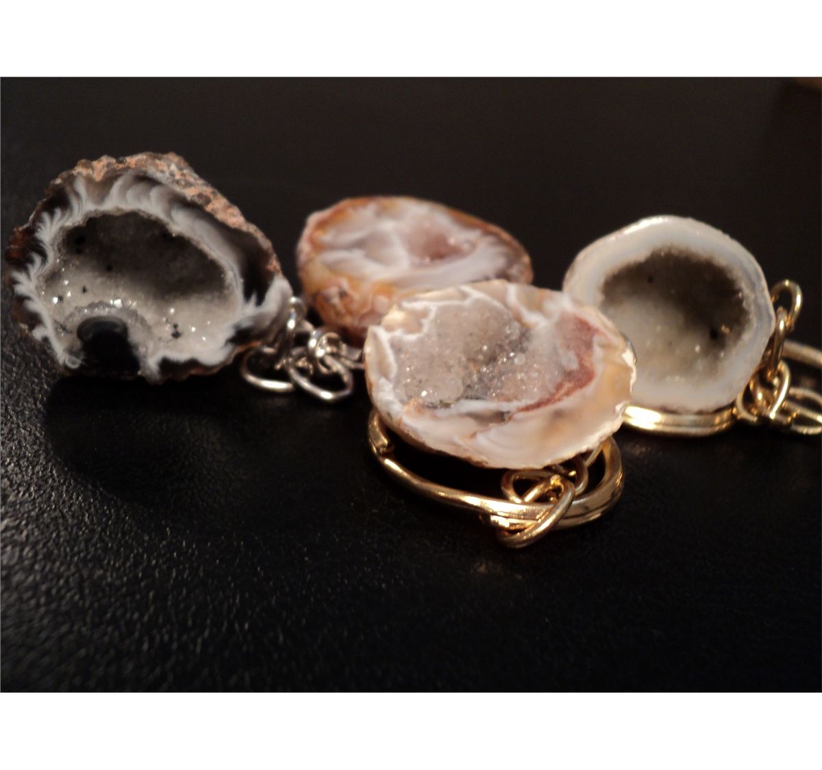 FOUR SMALL CUT GEODE ROCK KEYCHAINS