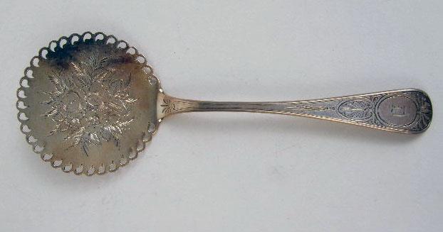 Comprising a Dominick & Haff stamped Bigelow Kennard & Co. serving spoon, a Wallace cold meat fork, monogrammed, a Tiffany & Co. flat server, monogrammed, and a Wm. Gale & Son ice cream knife, monogrammed, total weight apx. 10 T.O. 9"l, 9 3/4"l, 8 1/4"l and 11 1/4"l, respectively