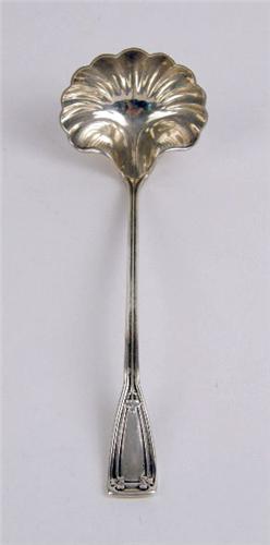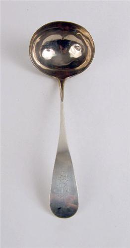 Comprising a matching soup and gravy ladle, stamped "A. Stowell and Co.", monogramme, a Tiffany "St. Dunstan" pattern sauce ladle, and a Norweigan hand-hammered sauce ladle, total weight apx. 10 T.O. 10 1/4", 6 1/2", 7 1/4", 7 1/2"l, respectively
