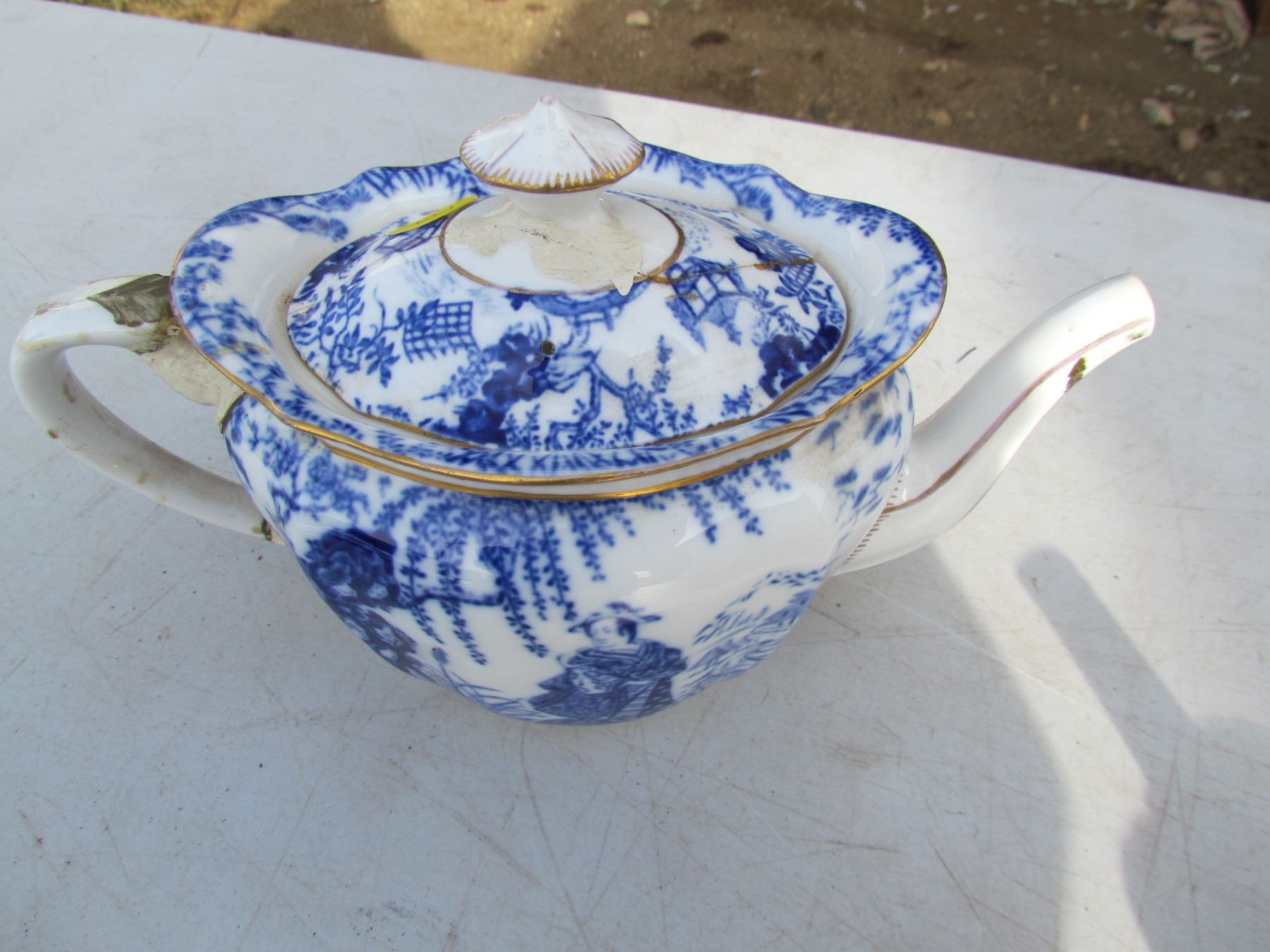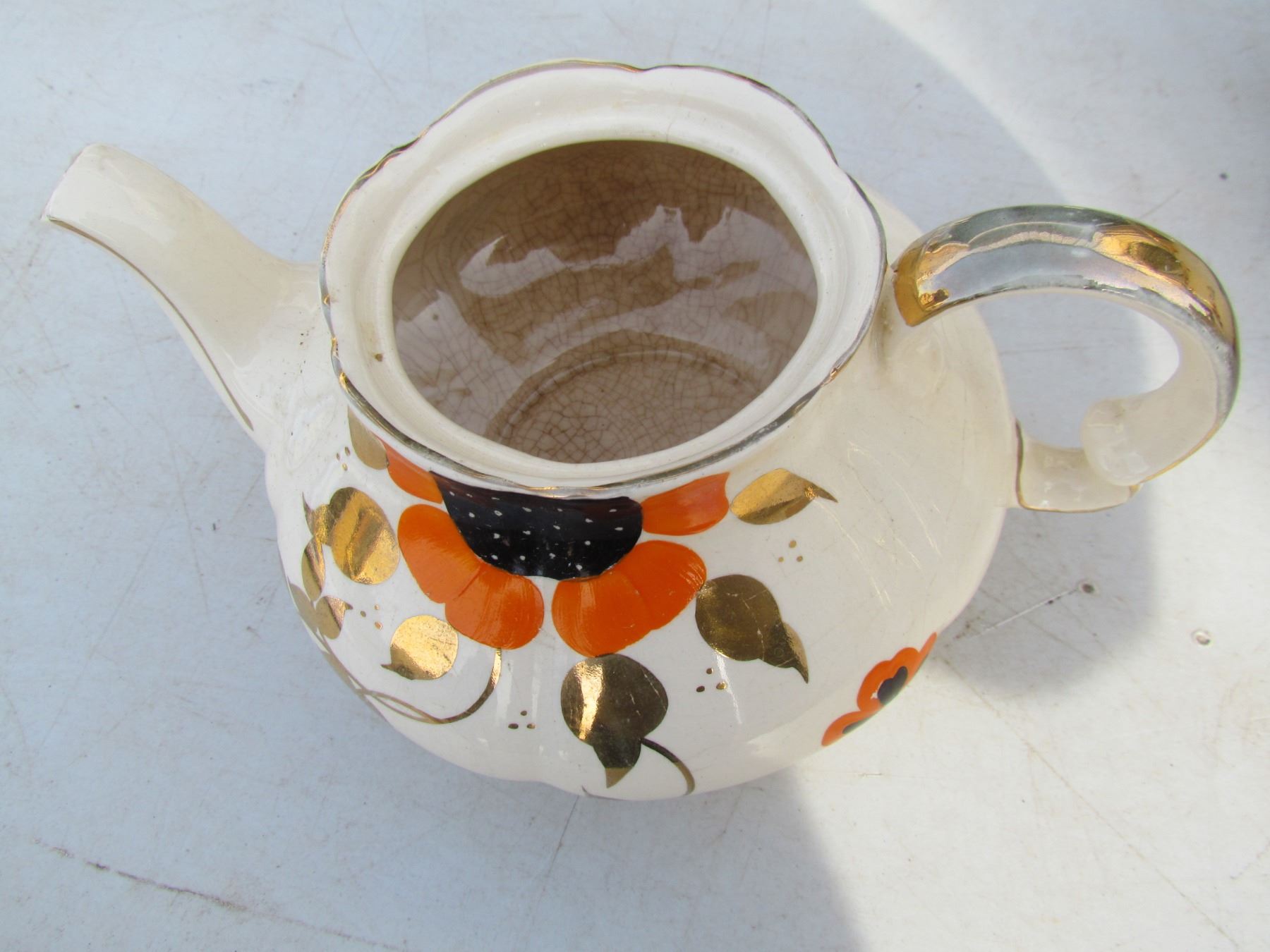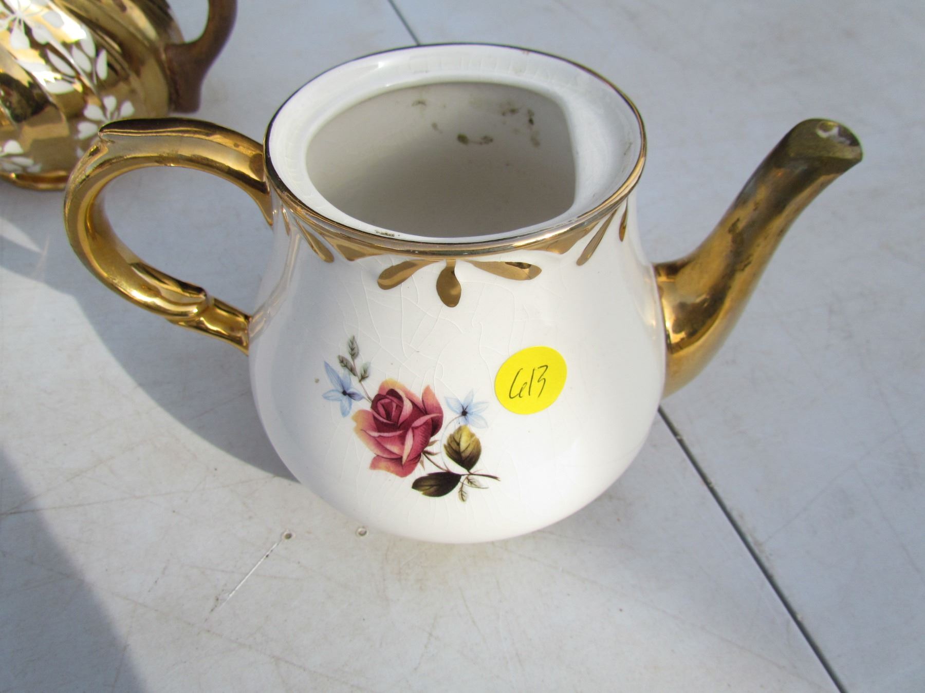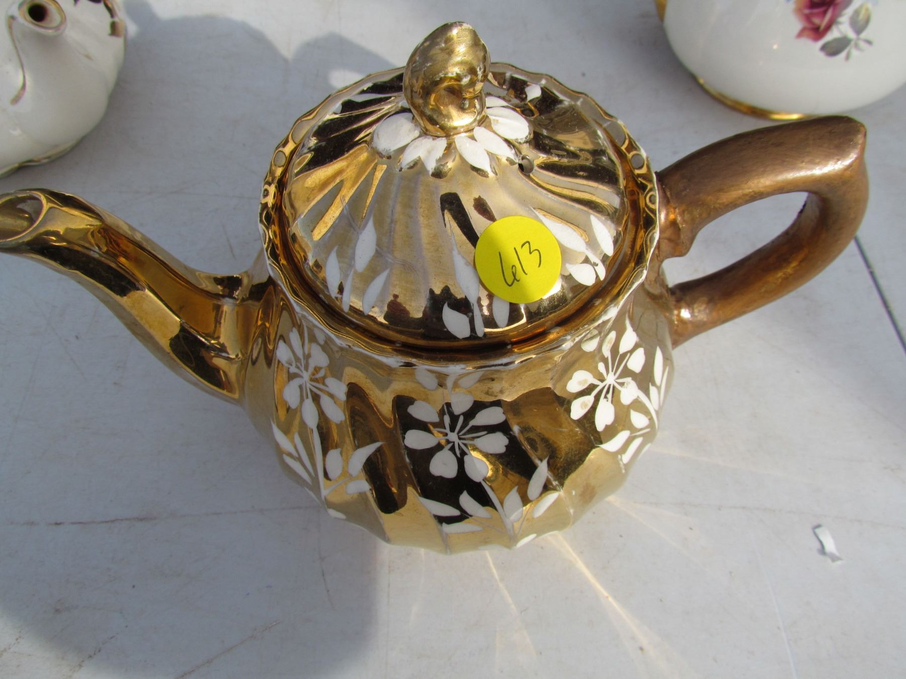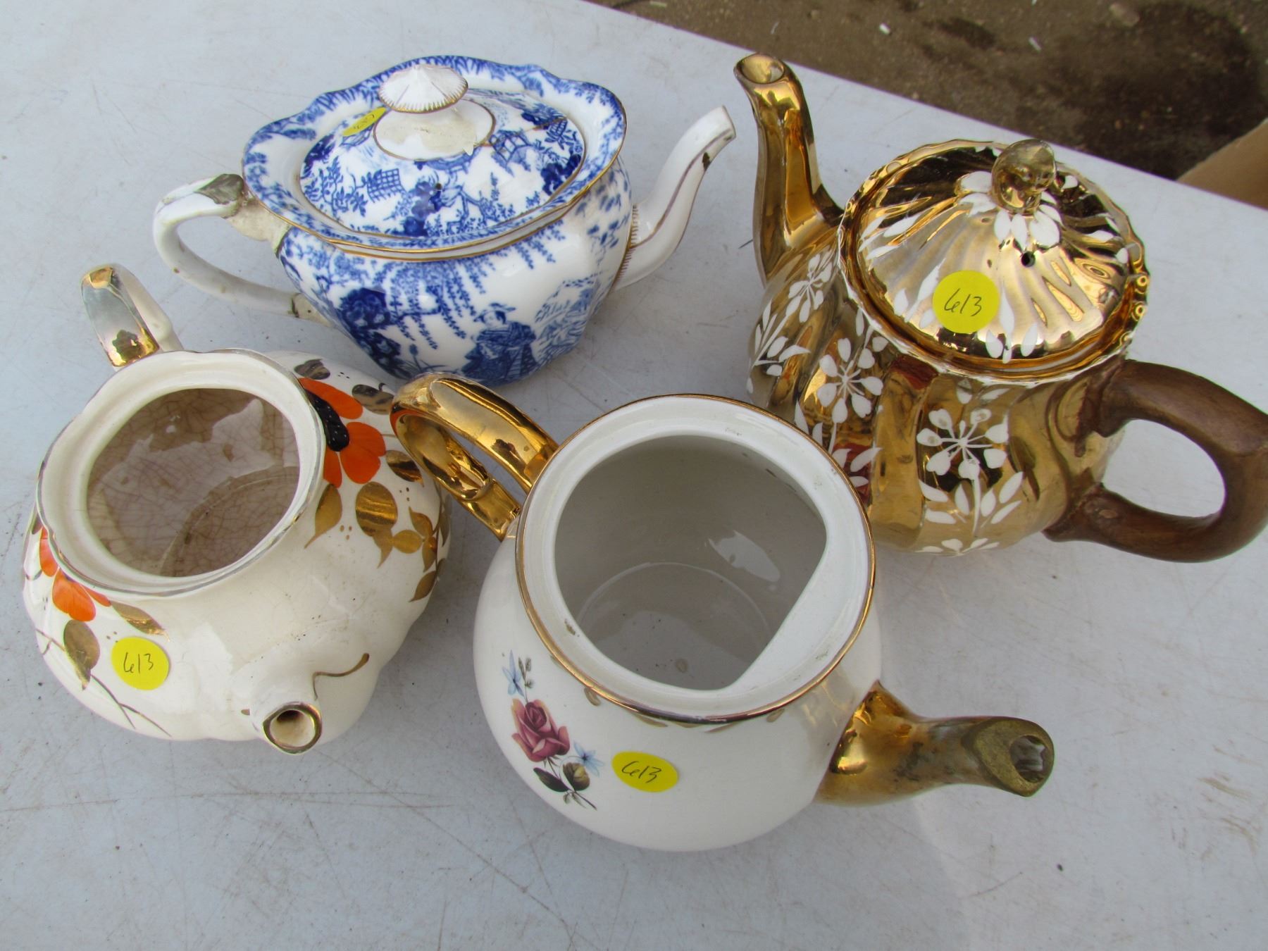 FOUR TEA POTS (1 HAS CRACKED LID)