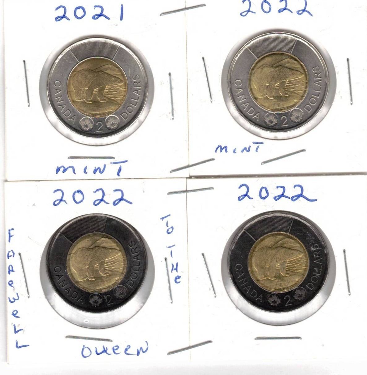 FOUR Toonies, 2021, 2022, and two farewell 2022 uncirculated