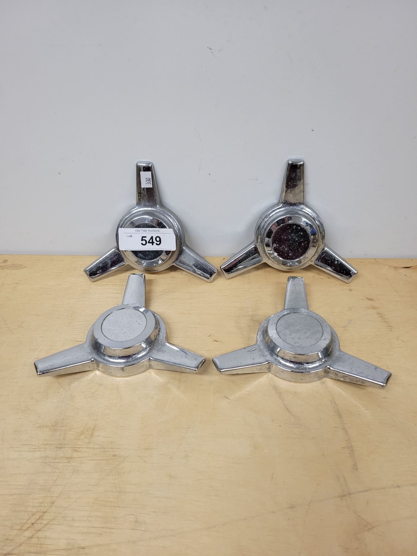 FOUR VINTAGE METAL CHROME WHEEL SPINNERS