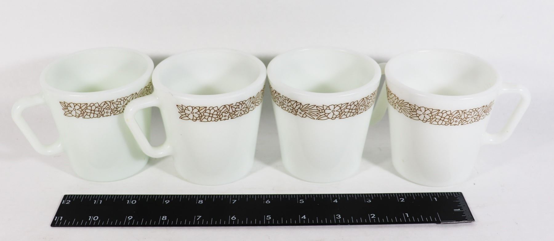 FOUR VINTAGE PYREX MILK GLASS COFFEE MUGS