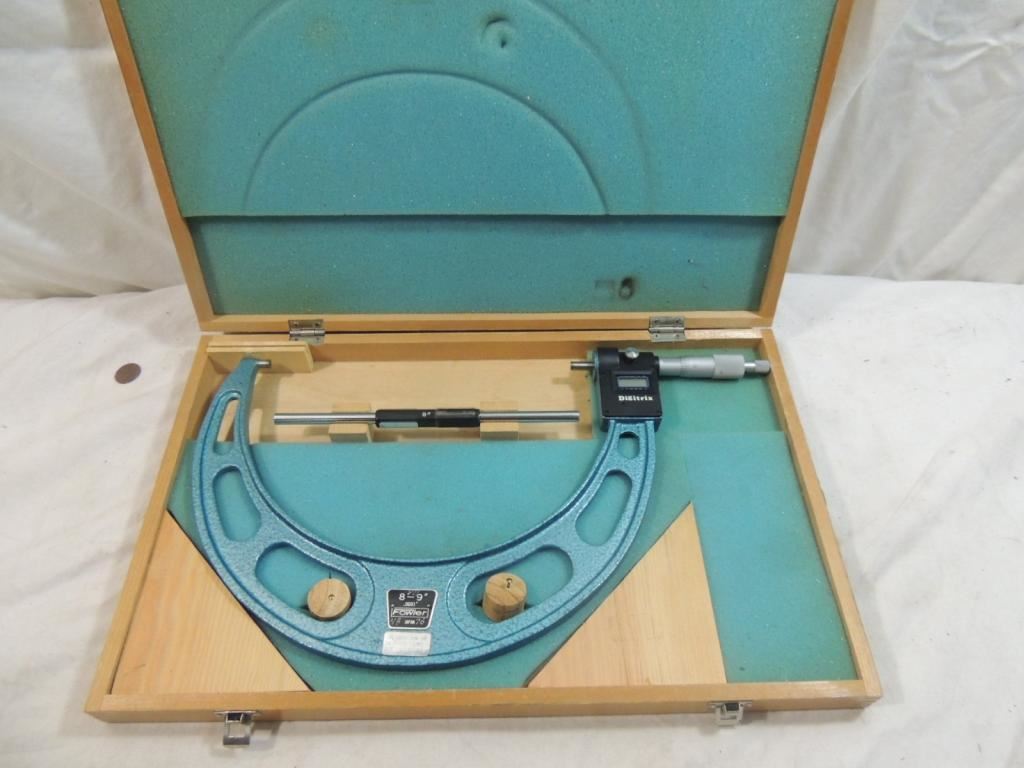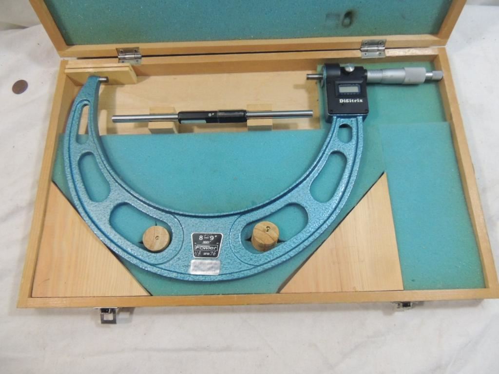 FOWLER DIGITRIX PRECISION MEASURING TOOL, MICROMETERS, GAGES, MACHINIST TOOLS, FORCE MEASUREMENT, PRECISION GRANITE, BOX, WOODEN CASE, AS SHOWN SEE PHOTO FOR MORE DETAILS.