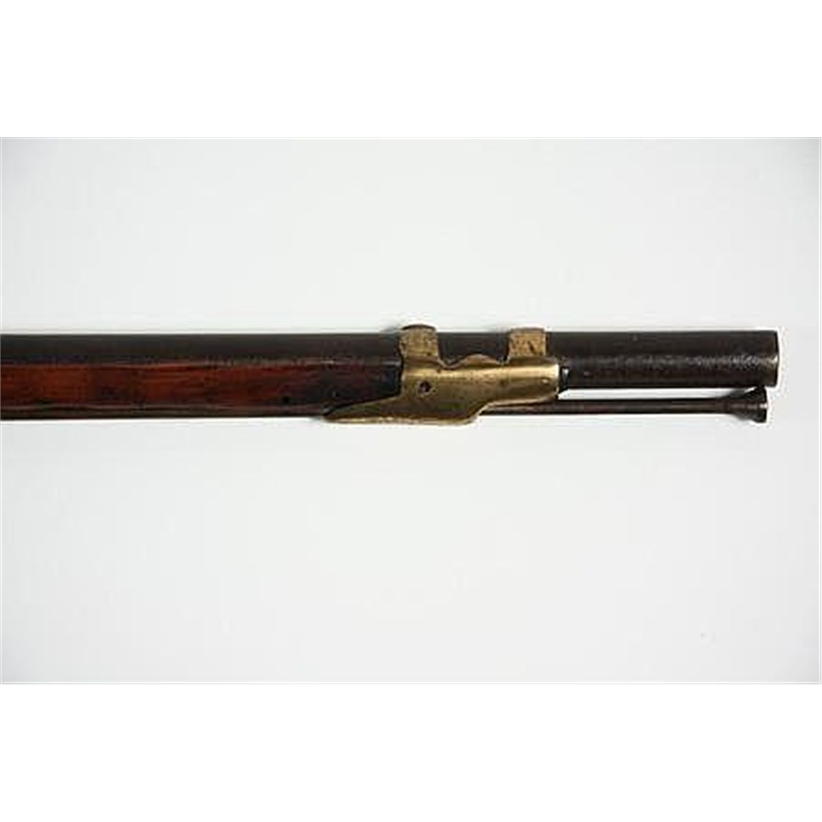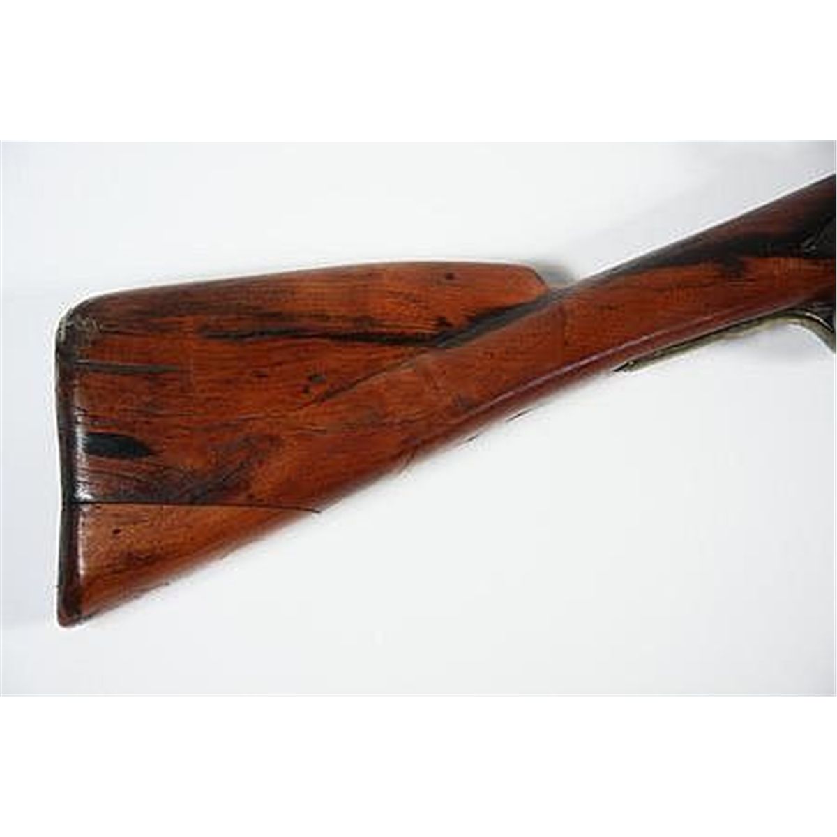 FOWLING PIECE, 18TH C - Full length cherry stock flintlock, fashioned after a 1st model Brown Bess, uses pins and brass bands. Club foot stock with English style lock. 52IN barrel, 67 1/2IN long overall.