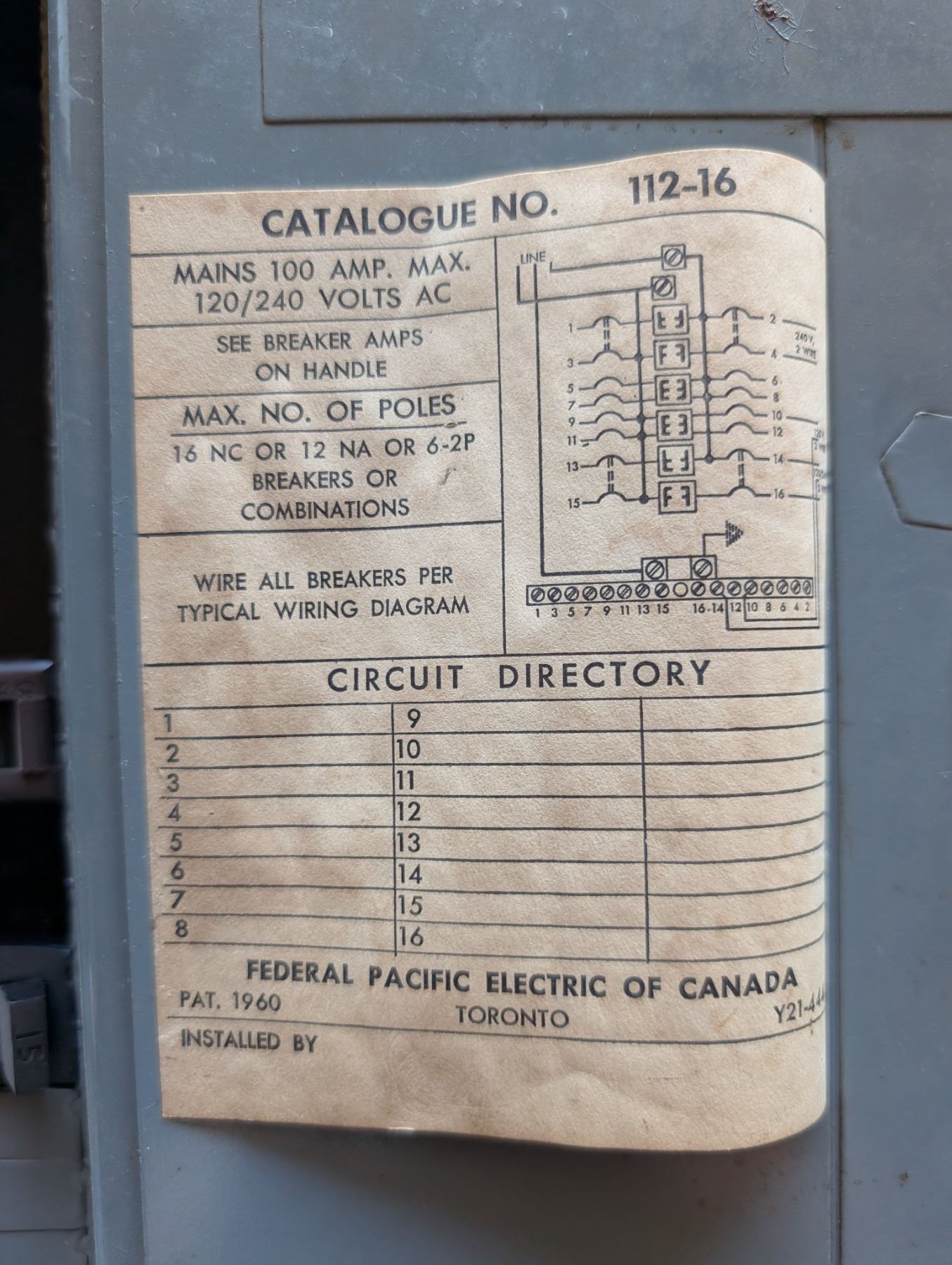 FPE Stab Lok Load Centre Electrical Box (not tested)