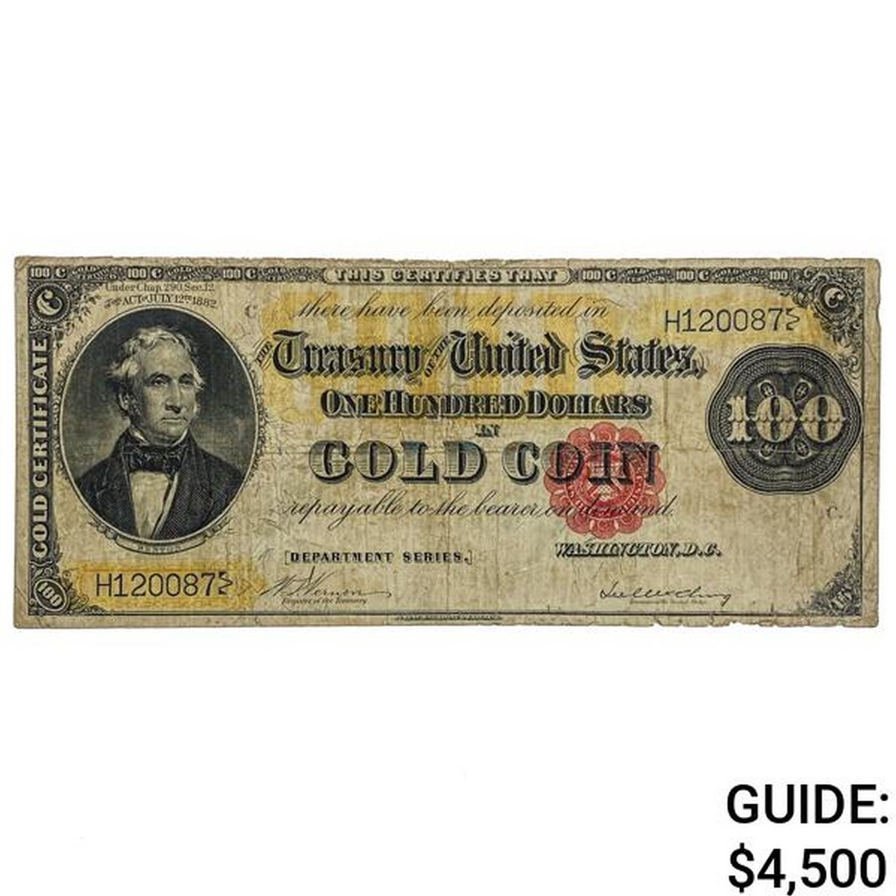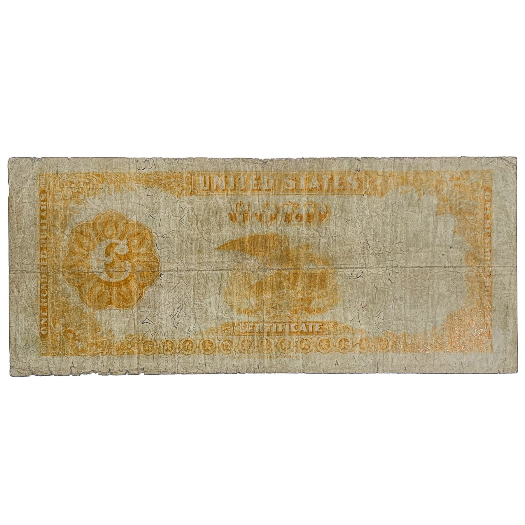 FR. 1209 1882 $100 ONE HUNDRED DOLLARS BENTON GOLD CERTIFICATE CURRENCY NOTE VERY FINE