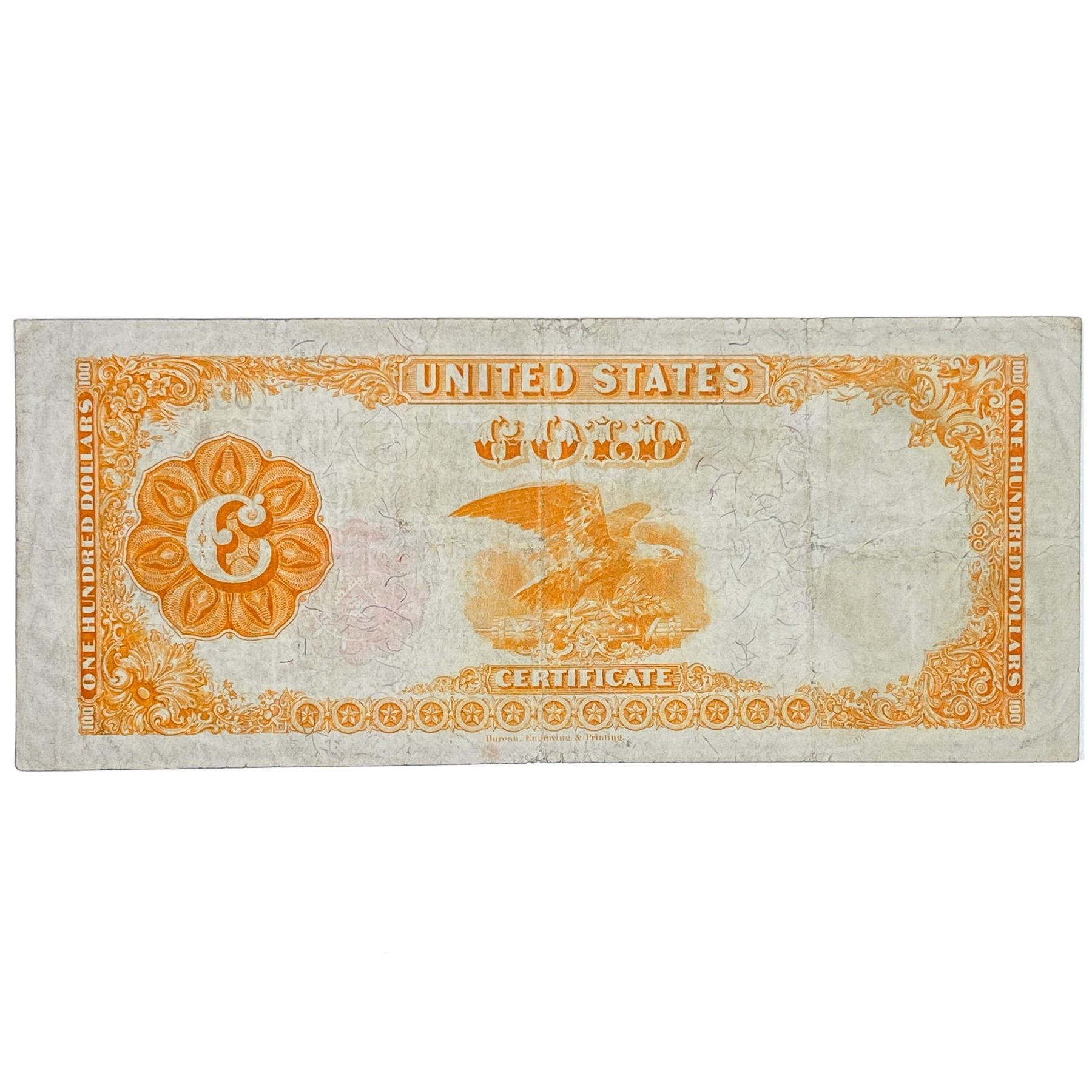 FR. 1214 1882 $100 ONE HUNDRED DOLLARS BENTON GOLD CERTIFICATE CURRENCY NOTE VERY FINE+