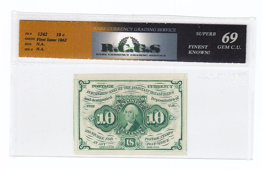 FR 1242 10C Fractional Certified GEM 69 Finest Known !