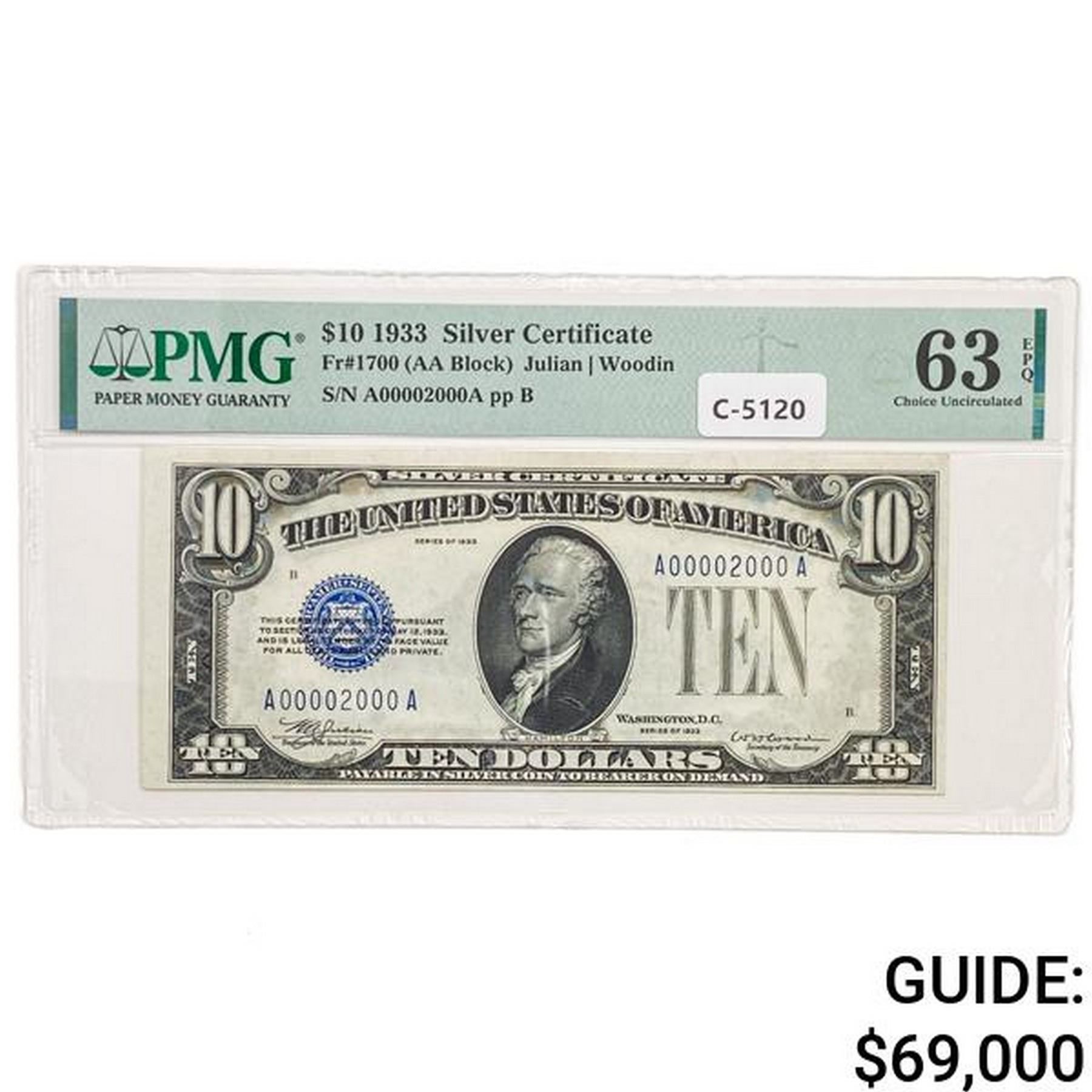 FR. 1700 1933 $10 TEN DOLLARS SILVER CERTIFICATE PMG CHOICE UNCIRCULATED-63EPQ KING OF SILVERS RARE
