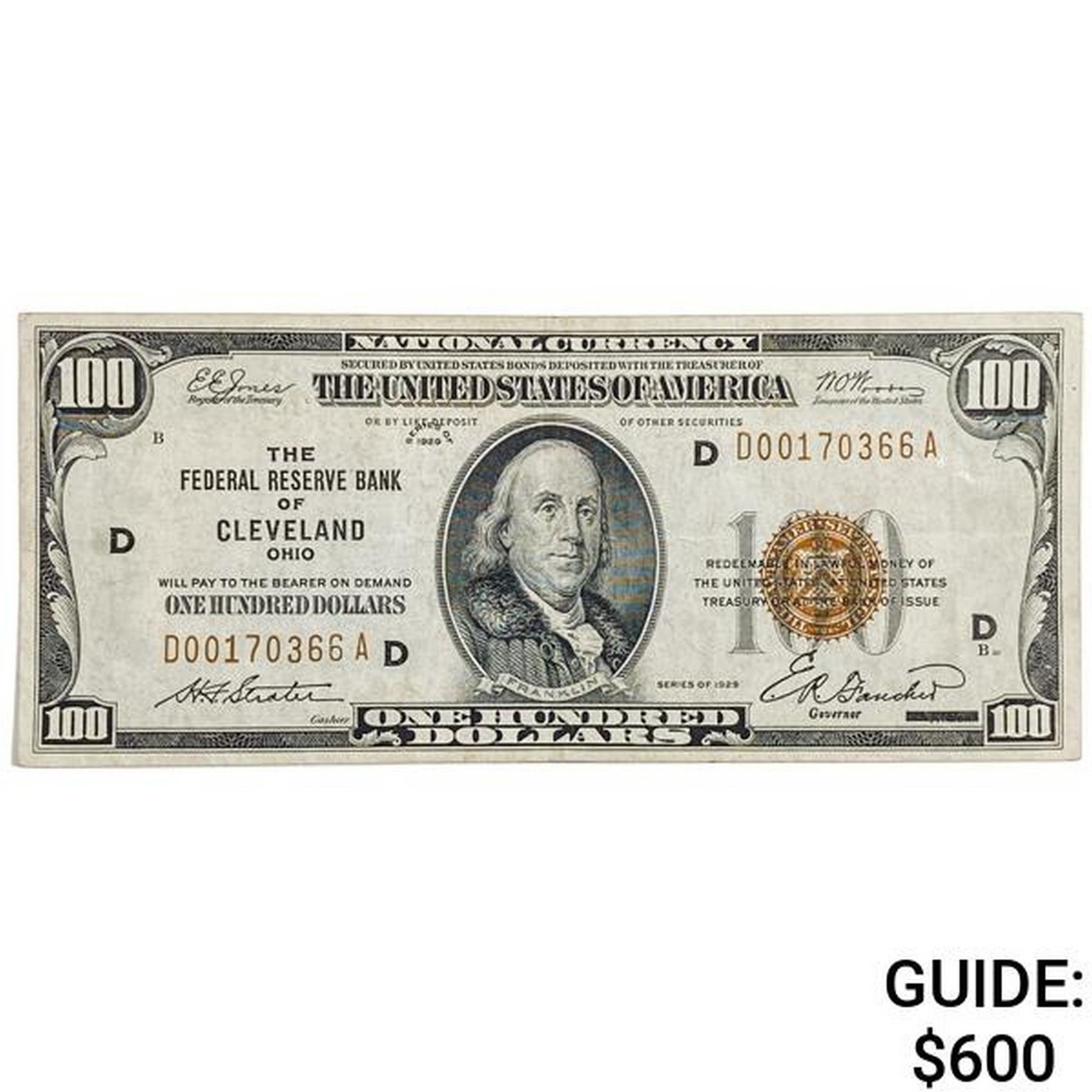 FR. 1890-D 1929 $100 FRBN FEDERAL RESERVE BANK NOTE CLEVELAND, OH EXTREMELY FINE