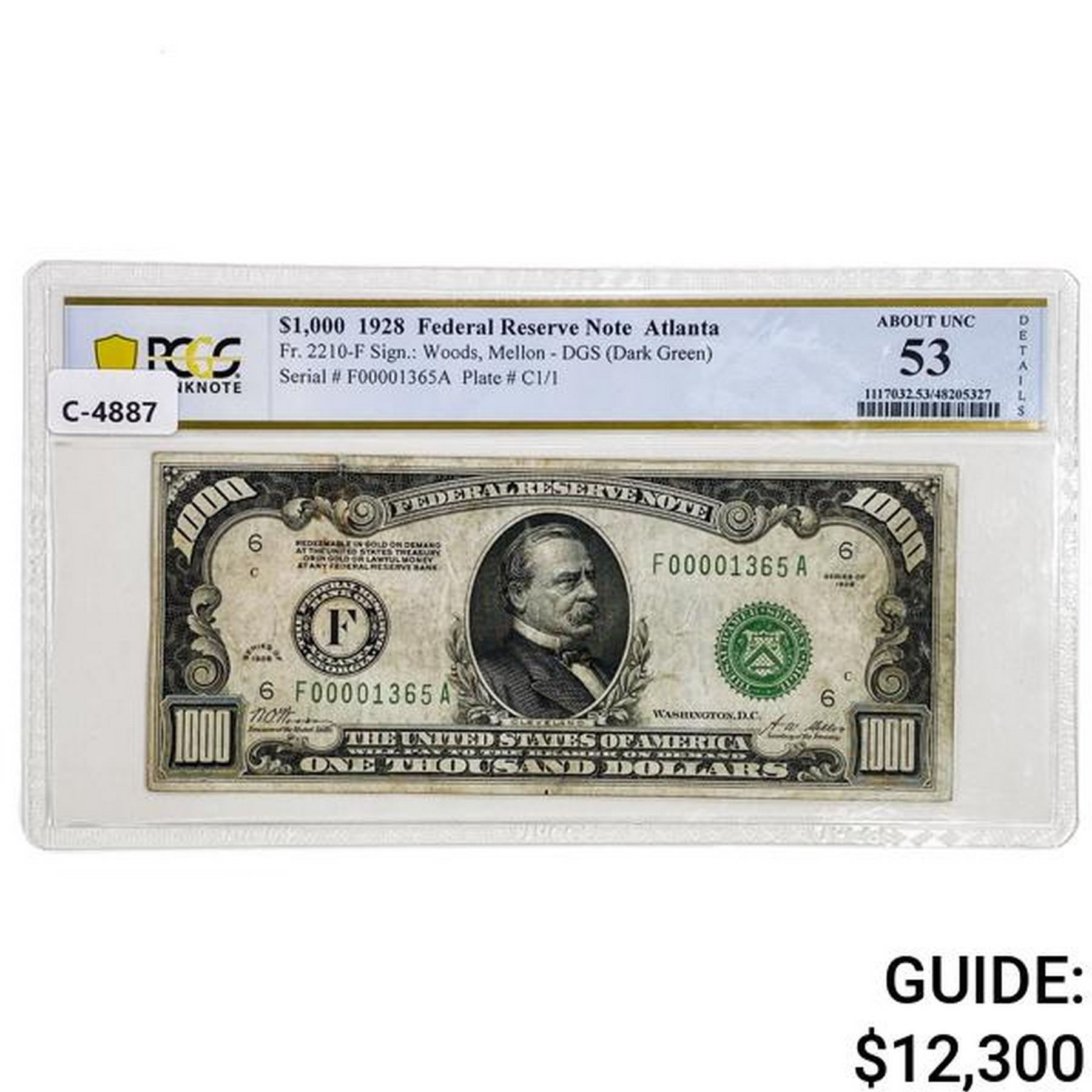 FR. 2210-F 1928 $1,000 GOLD ON DEMAND FRN ATLANTA, GA PCGS BANKNOTE ABOUT UNCIRCULATED-53