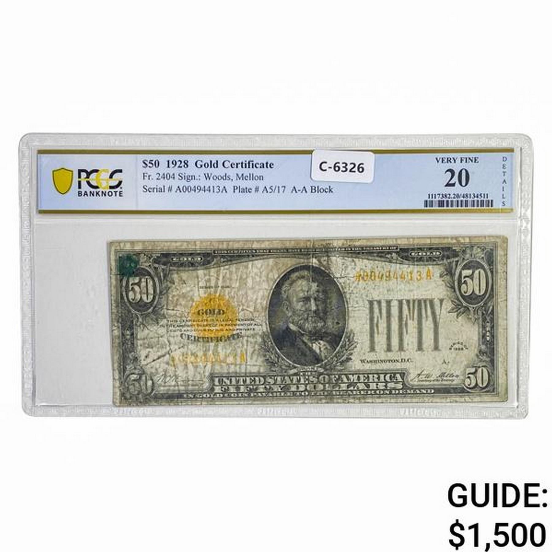 FR. 2404 1928 $50 GOLD CERTIFICATE PCGS VF-20
