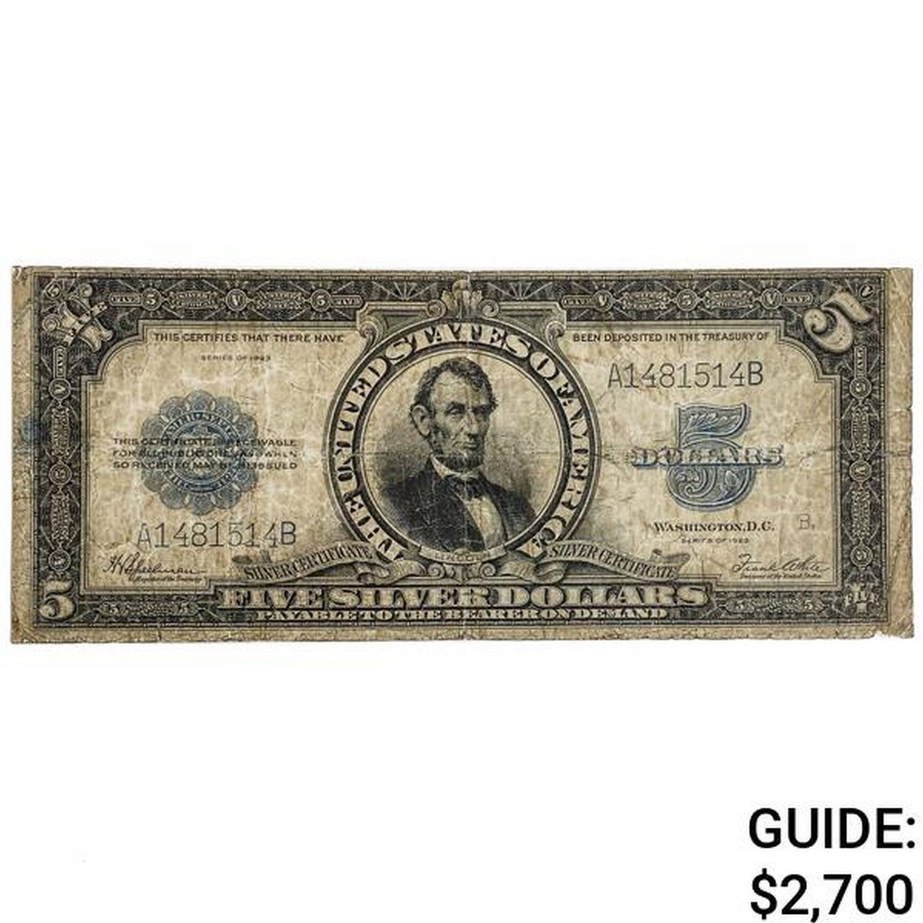 FR. 282 1923 $5 FIVE DOLLARS PORTHOLE SILVER CERTIFICATE CURRENCY NOTE