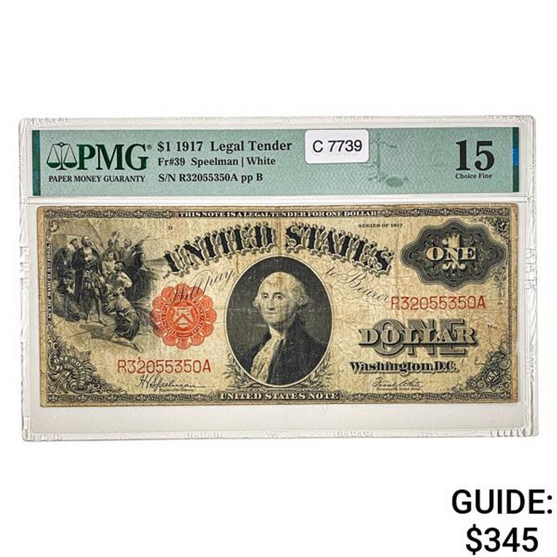 FR. 39 1917 $1 LEGAL TENDER USN PMG FINE-15