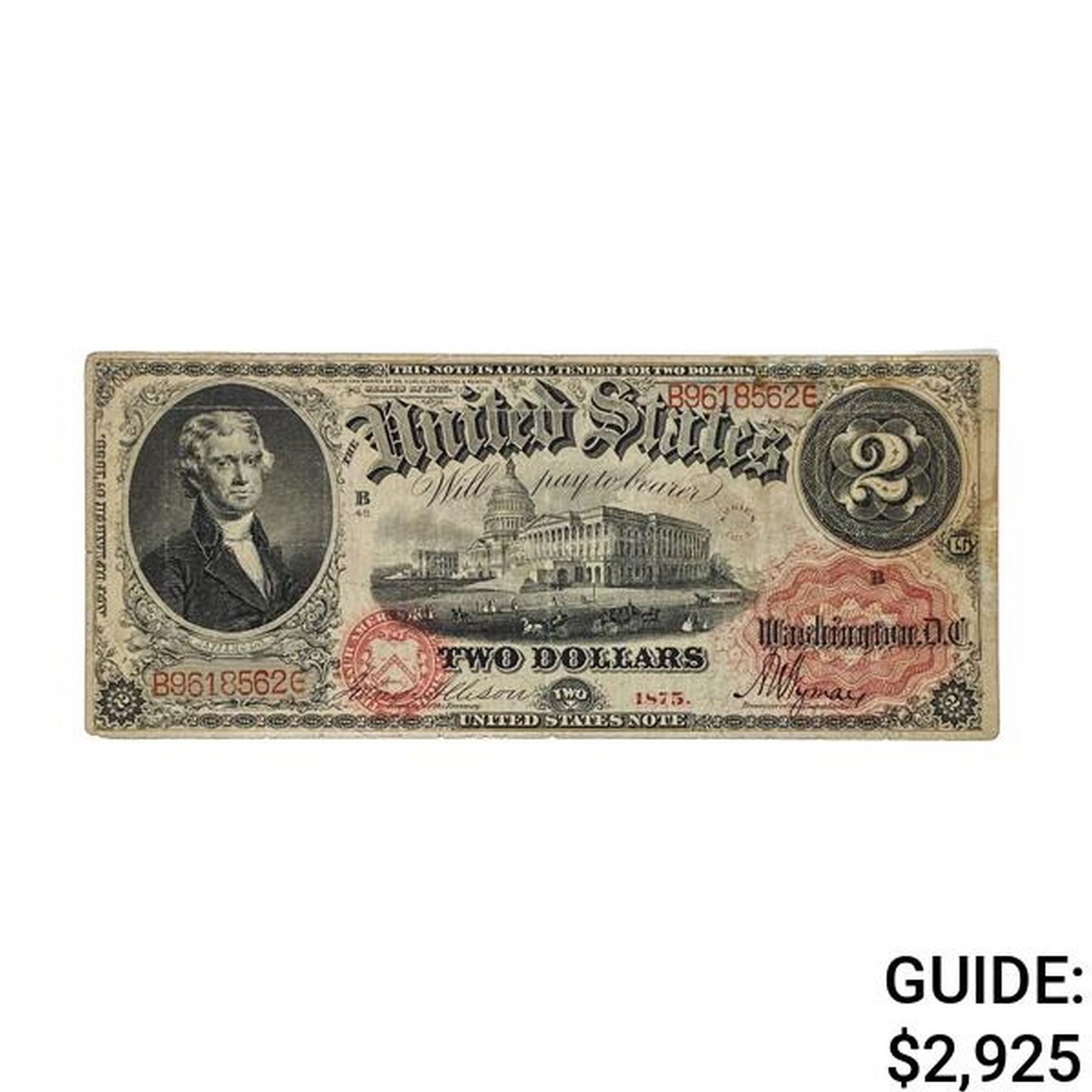 FR. 47 1875 $2 TWO DOLLARS LEGAL TENDER UNITED STATES NOTE SMALL RED WITH RAYS VERY FINE+