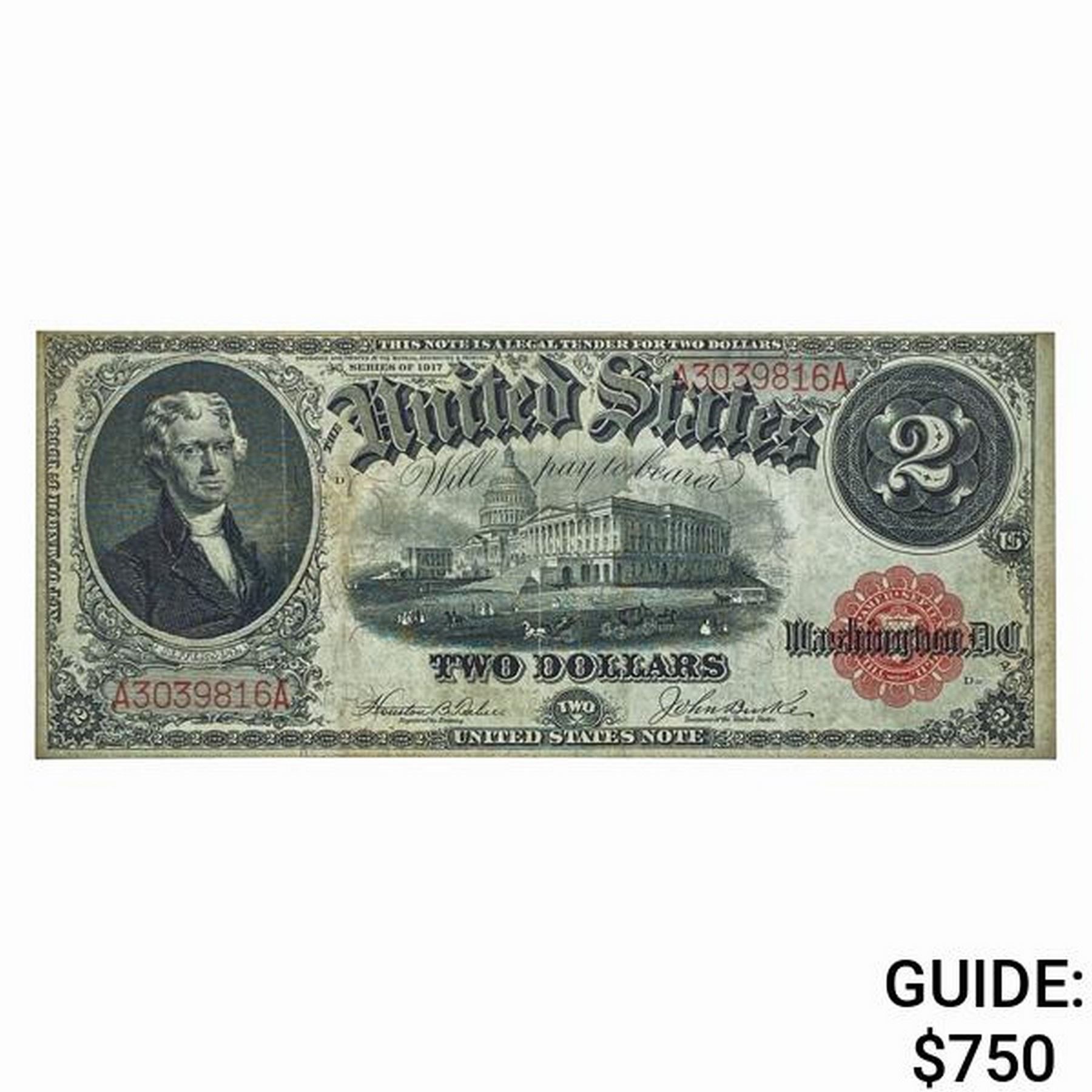 FR. 57 1917 $2 LEGAL TENDER USN XF