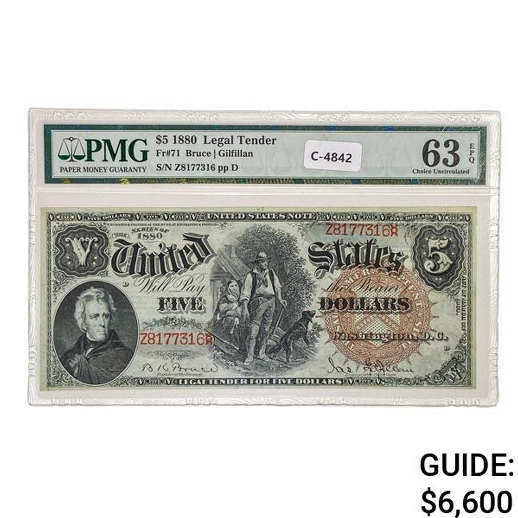 FR. 71 1880 $5 FIVE DOLLARS WOODCHOPPER LEGAL TENDER UNITED STATES NOTE PMG CHOICE UNCIRCULATED-63EPQ