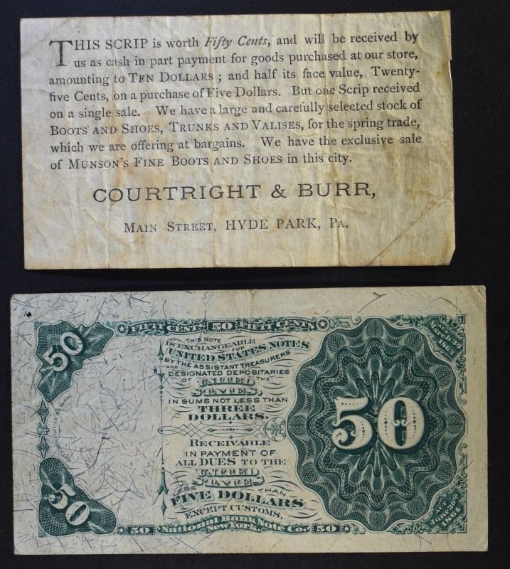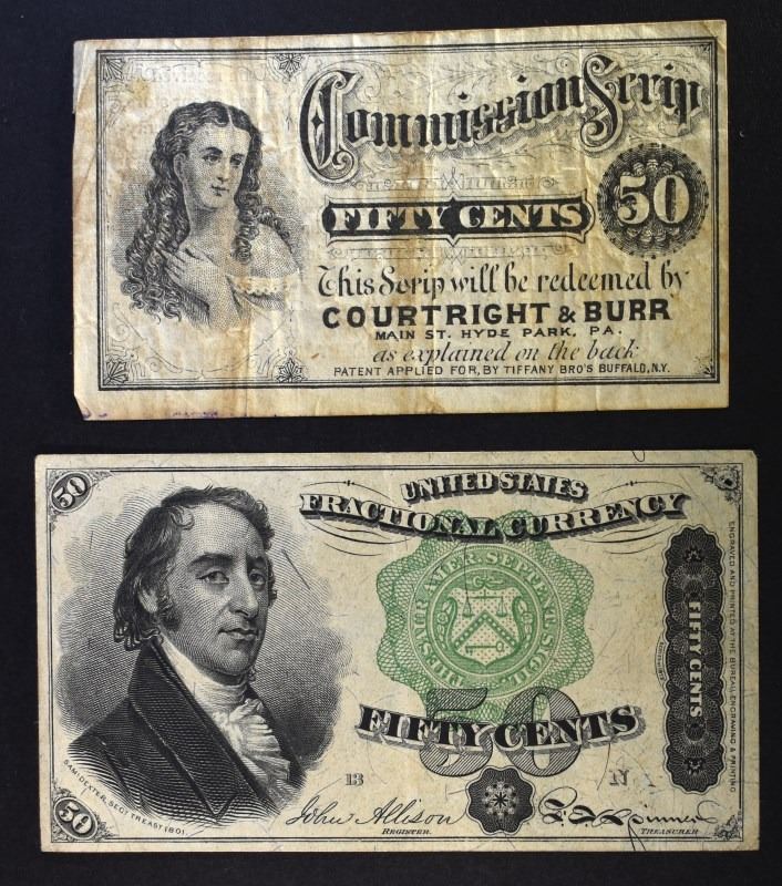 1863 50-CENT XF/AU & 50-CENT COURTRIGHT & BURR RARE! ESTIMATE $150 - $175.