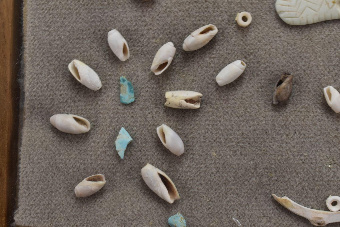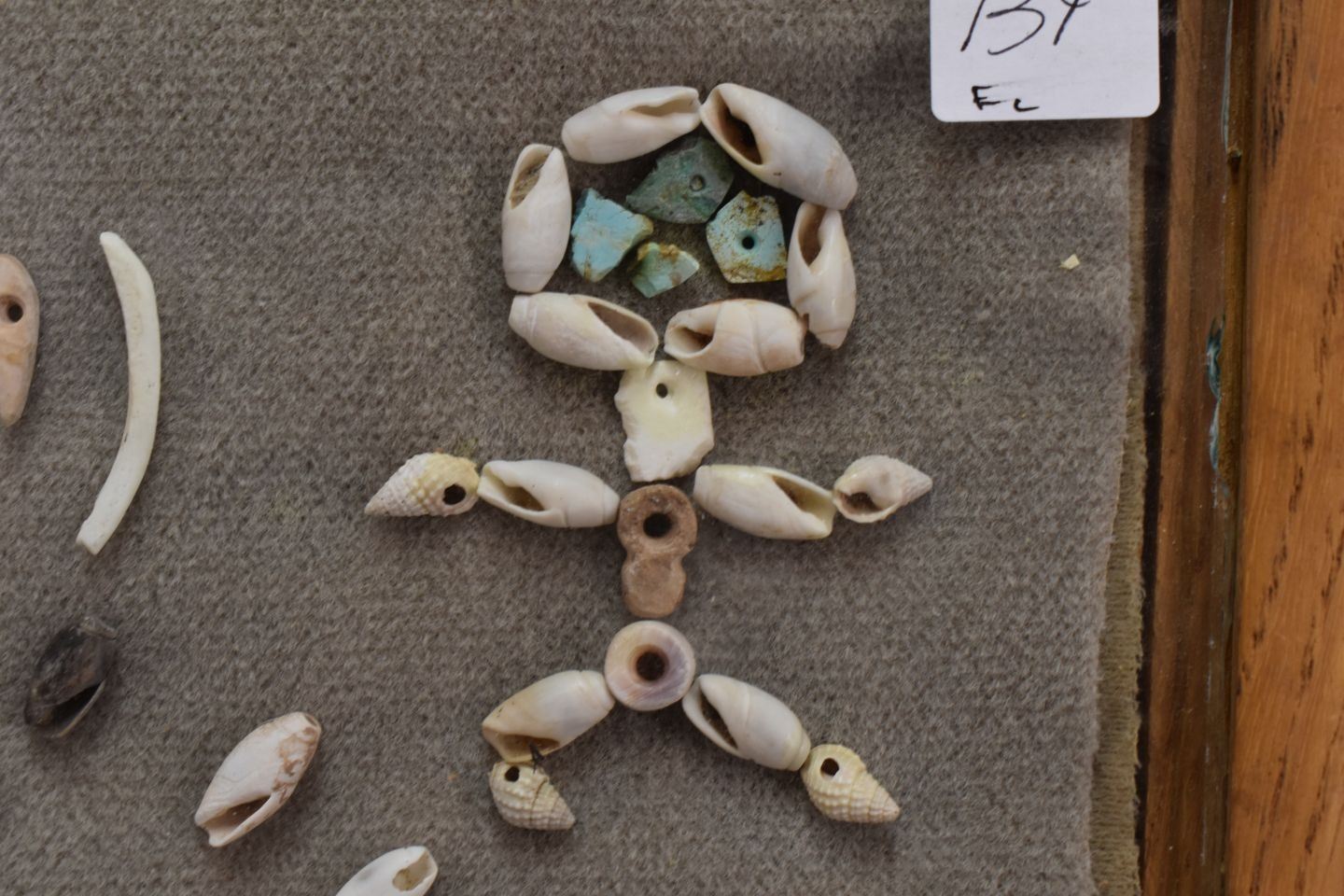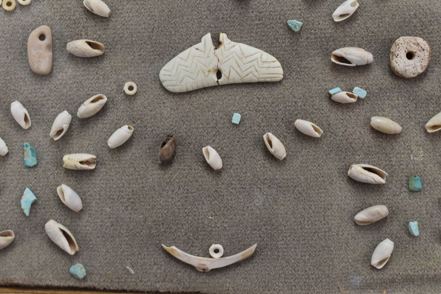 prehistoric Anasazi Indian shell beads and pendants with pieces of turquoise 10.5" x 12"